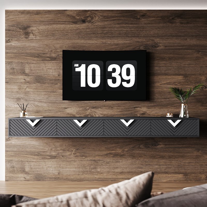 Функціональний виріб може бути підставкою для телевізора та забезпечувати зручне зберігання необхідних речей одночасно завдяки висувним ящикам закритого типу. На поверхні тумби вдало розмістяться ваза з квітами, фоторамка, свічка, статуетка та інший декор. Розмір виробу (ВхШхГ): 200×2060х360 мм. Залежно від габаритів кімнати ви можете підібрати цю модель і меншого розміру – тумба під телевізор Оксфорд 2.