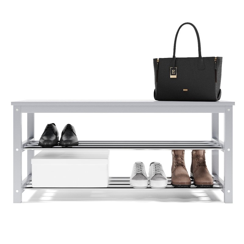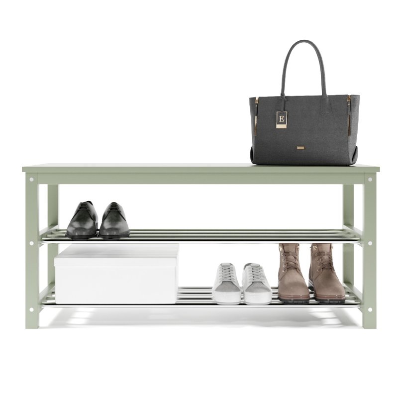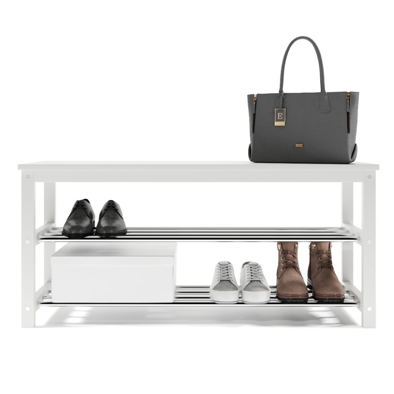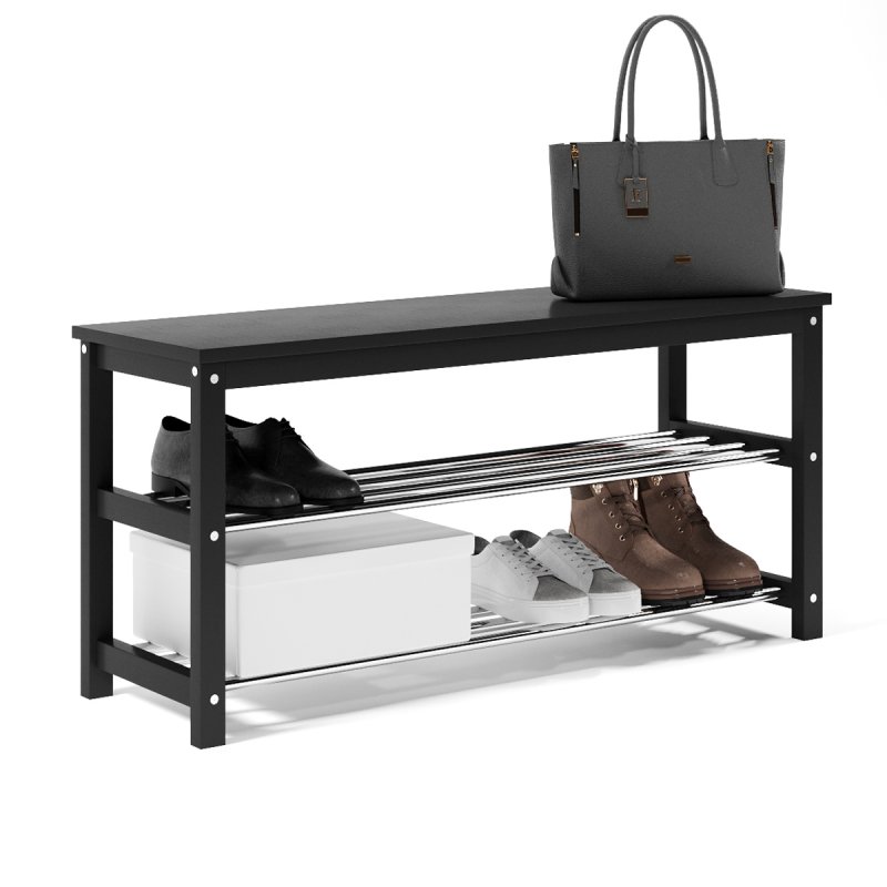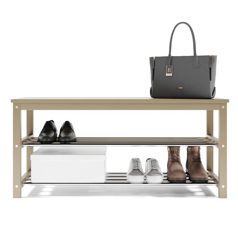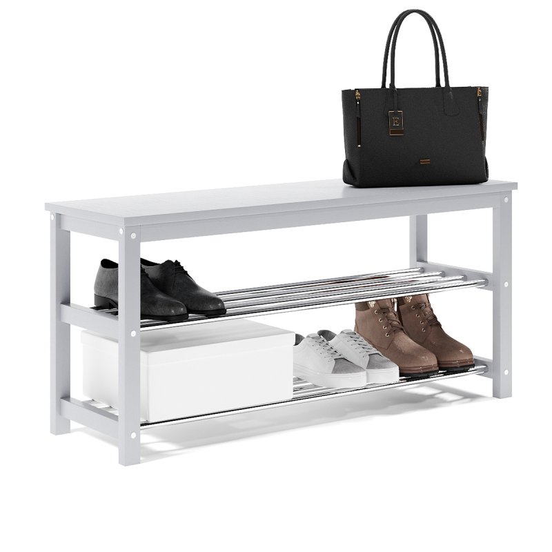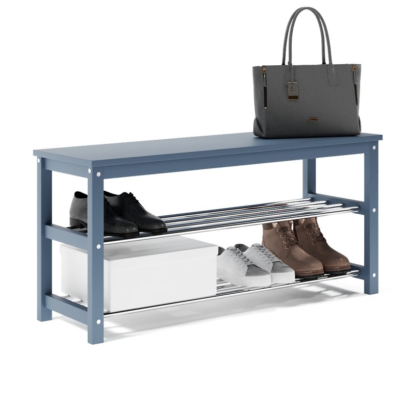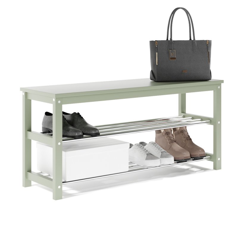 Завдяки натуральній основі та якісному італійському лаку, виріб має гарний зовнішній вигляд, поверхня надійно захищена від можливих побутових пошкоджень, подряпин, вологи та ультрафіолету. Габаритні розміри (В/Ш/Г): 480х1020х320 мм. Полиці виконані із сталевих хромованих труб діаметром 16 мм. Відстань від підлоги до нижньої полички – 65 мм, верхньої – 265 мм. Ви можете розмістити на полицях банкетки 8-10 пар дорослого взуття, це дозволить утримувати передпокій у порядку та не створювати під ногами зайвий хаос. Хромоване покриття металевих полиць забезпечує надійний захист від впливу корозії, тому можете сміливо ставити на них навіть вологе взуття, це допустимо.