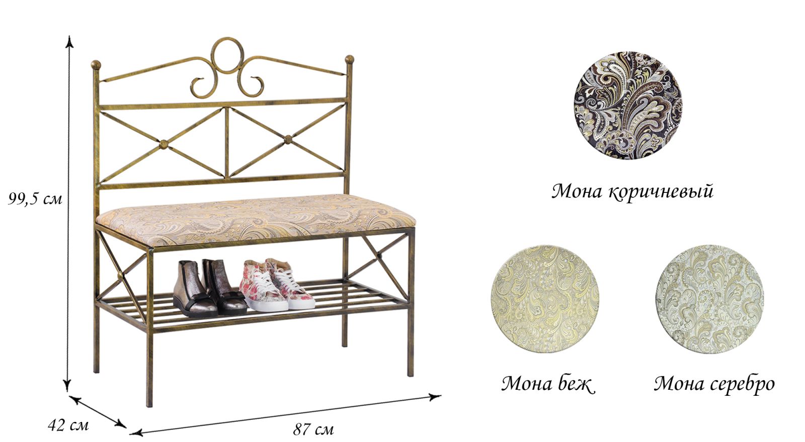 Кований диван Прованс 3 зроблений з металевої труби квадратного перерізу методом холодного кування. Металевий каркас пофарбований порошковою фарбою із нанесенням ефекту патини. Банкетка Прованс 3 може бути виконана з різними варіантами оббивки тканиною гобеленової. На такій банкетці зручно розташуватися відпочити та насолодитися видом з веранди заміського будинку. Також кований диван чудово буде виглядати в просторій передпокої, в зоні очікування салону краси, SPA салону, перукарні. У нашому інтернет-магазині ви можете купити ковану банкетку за ціною виробника. Зробіть замовлення і ми надішлемо вам товар будь-яким перевізником до будь-якого населеного пункту України. Також надамо гарантію на виріб протягом 2 років.