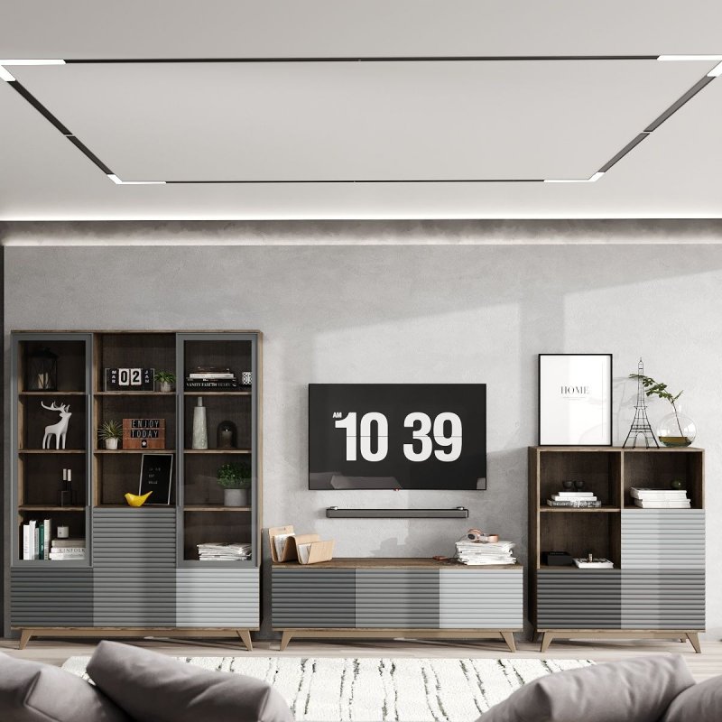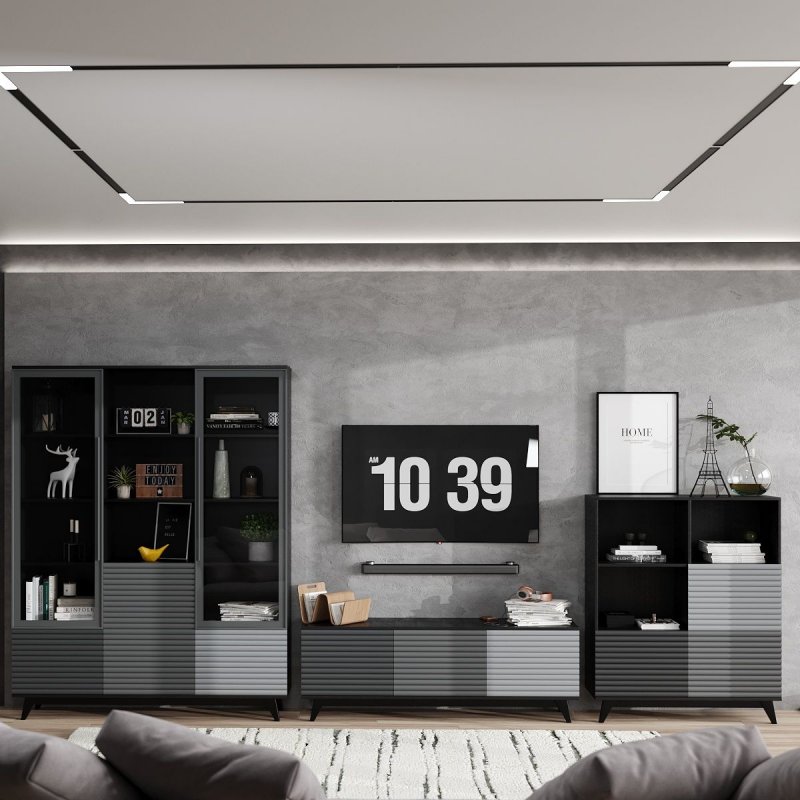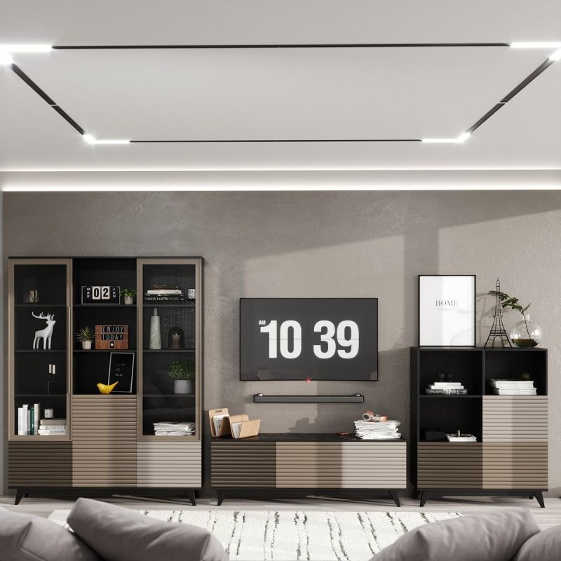 Велика кількість закритих поличок і ящиків дає можливість помістити в них всю дрібницю, яку необхідно сховати від сторонніх очей та захистити від пилу. Також там буде зручно зберігати постільну білизну, рушники, журнали та інше. А відкриті полички та просторі стільниці виступлять у ролі підставки для предметів декору (вази з квітами, фотографій, книг, сервізів тощо). Стінка у вітальню представлена у дев'яти спокійних нейтральних відтінках, поєднання яких додасть будь-якому приміщенню шляхетності та шарму. Всі вироби оснащені сучасною системою відкриття Push to open, яка набирає все більшої популярності завдяки своїй зручності, надійності та цікавому дизайну.