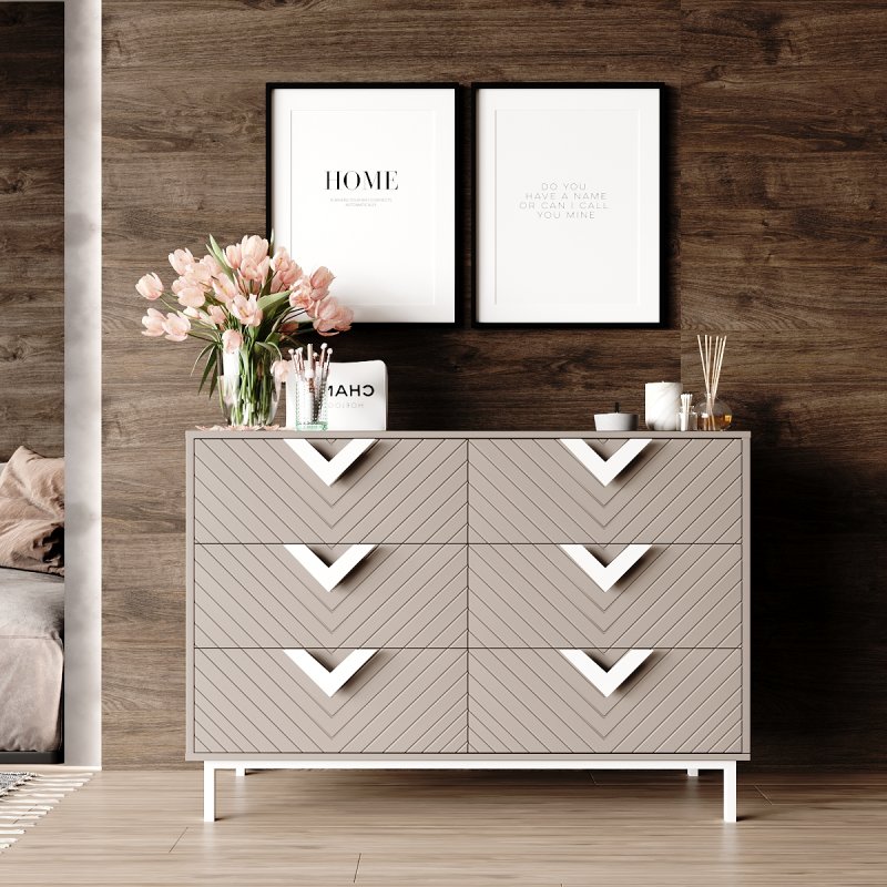 Залежно від кімнати, виріб матиме різне призначення. Класичним варіантом є комоди для спальні. У шести великих просторих ящиках можна розмістити одяг, білизну, спальні та іншу дрібницю. Розміри виробу 805х1140х400мм, що дозволяє поставити на нього телевізор, вазу з квітами або фоторамки. А якщо розмістити зверху дзеркало, він також стане Вам туалетним столиком.