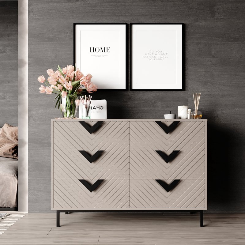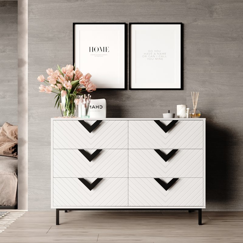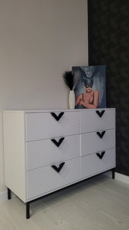 Залежно від кімнати, виріб матиме різне призначення. Класичним варіантом є комоди для спальні. У шести великих просторих ящиках можна розмістити одяг, білизну, спальні та іншу дрібницю. Розміри виробу 810х1140х400 мм, що дозволяє поставити на нього телевізор, вазу з квітами або фоторамки. А якщо розмістити зверху дзеркало, він також стане Вам туалетним столиком.
