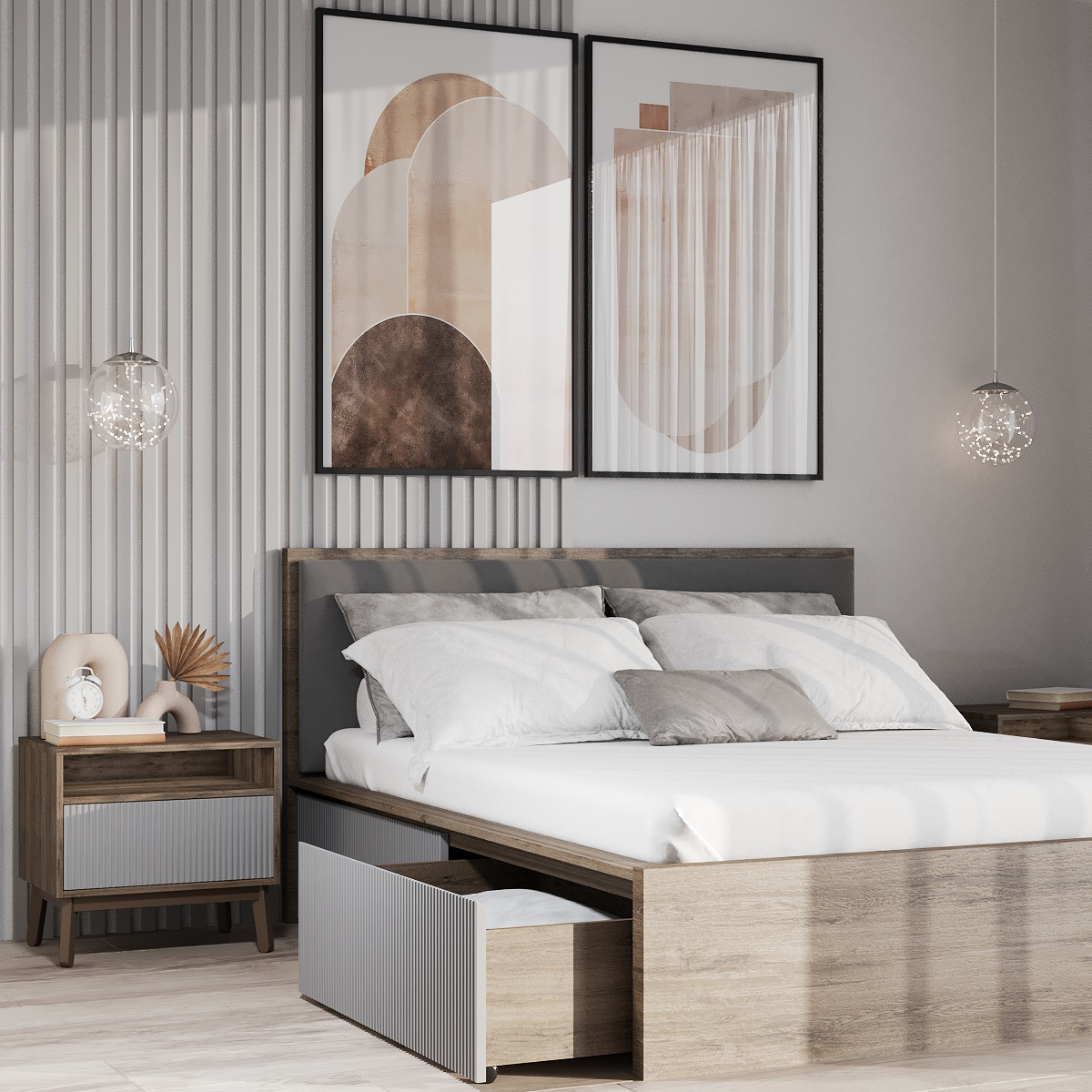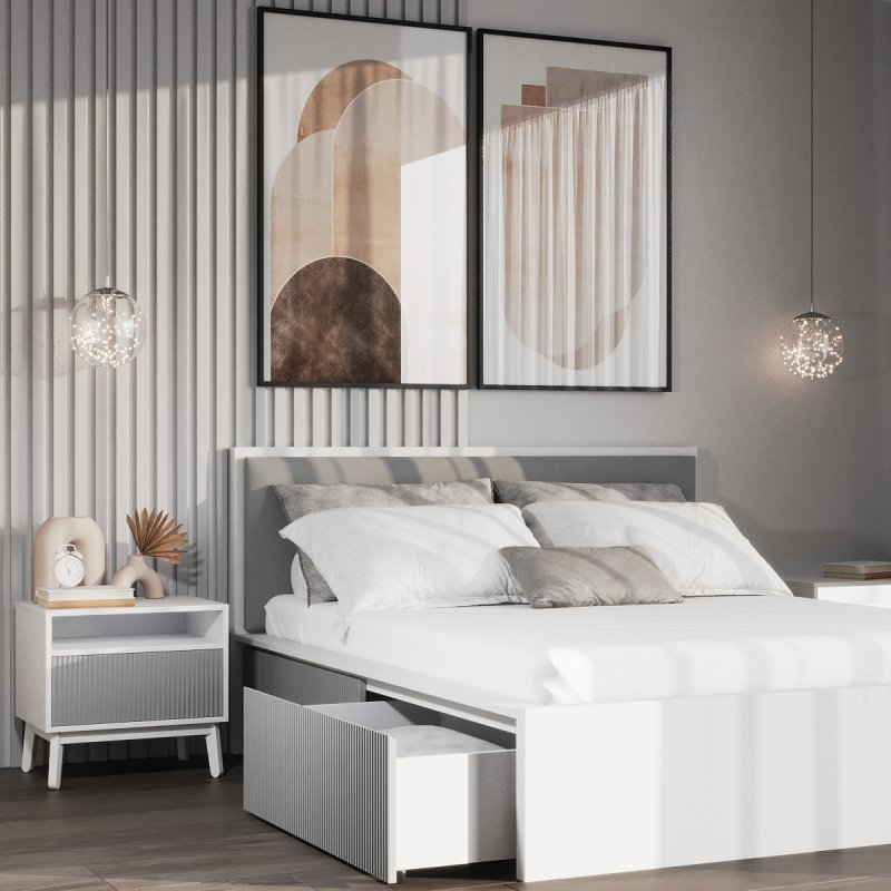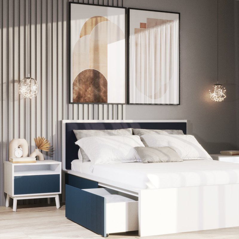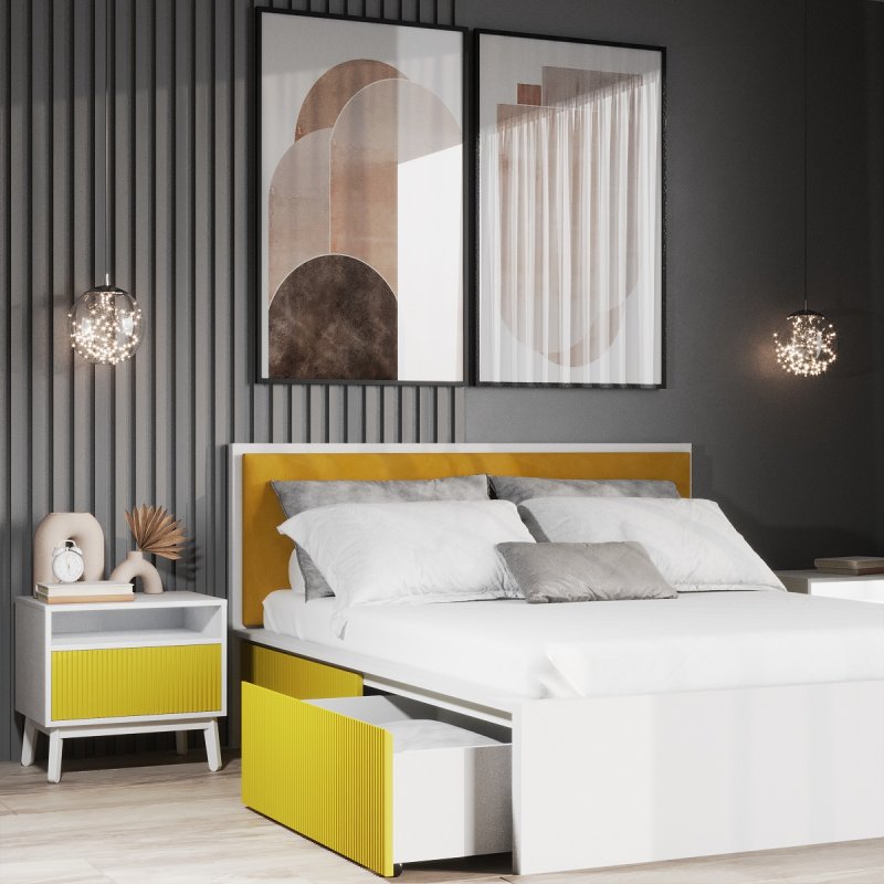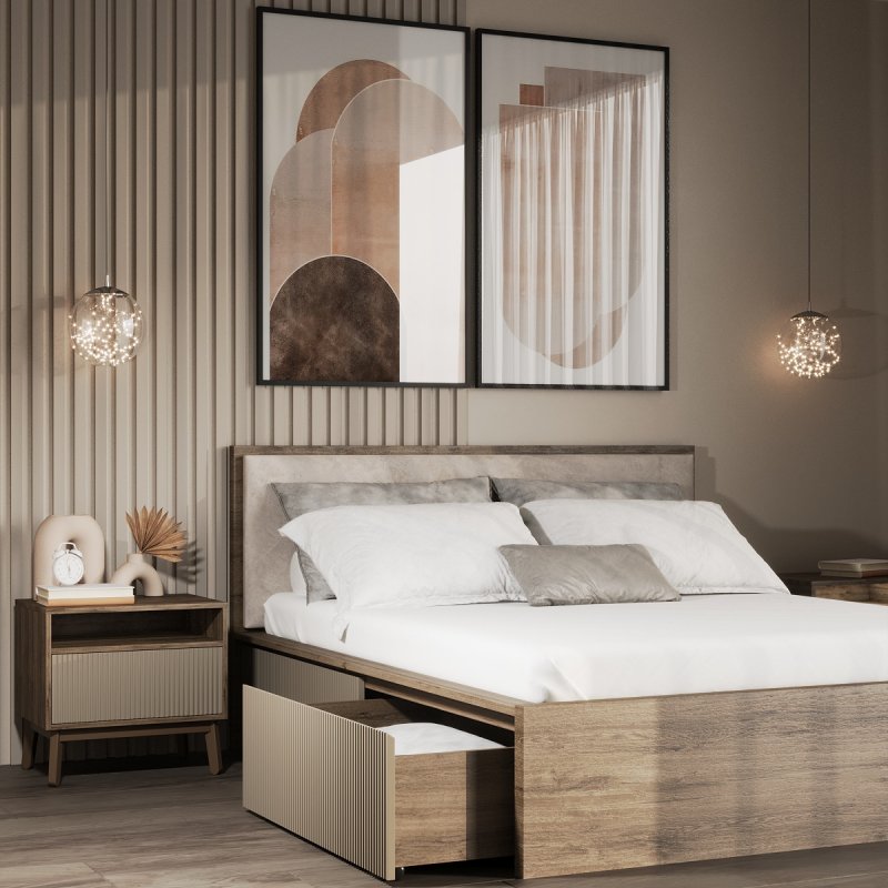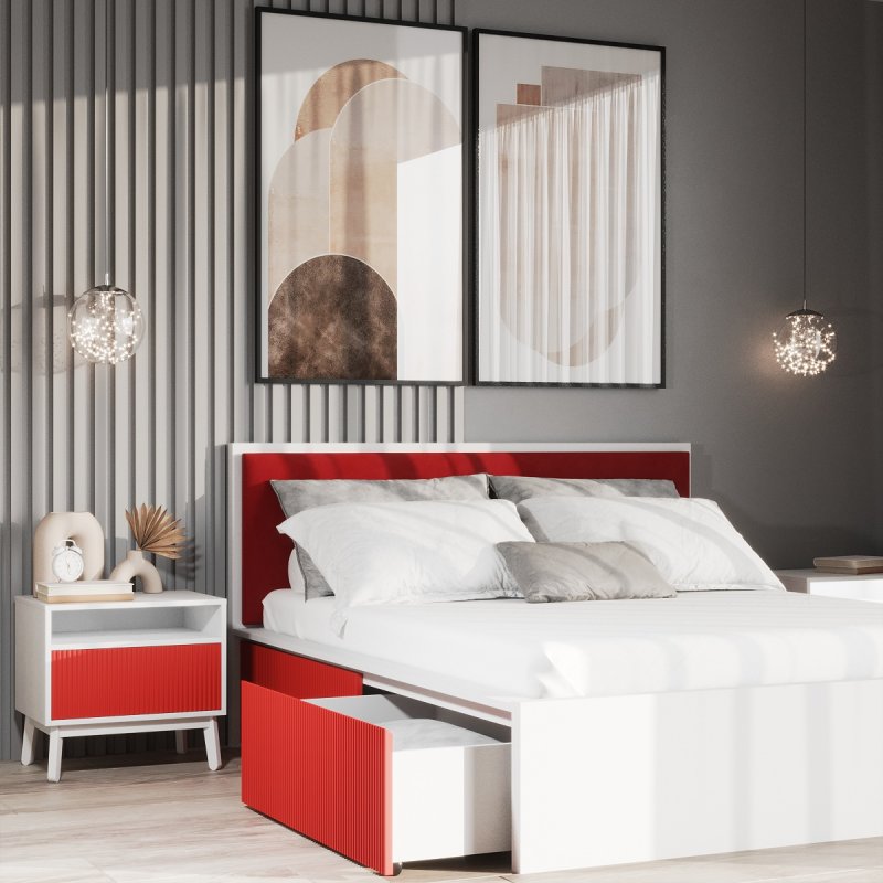 Виготовлено ліжко з якісних матеріалів - ДСП та МДФ. Міцний масивний каркас забезпечує стійкість виробу та надає йому солідності та надійності. А наявність висувних ящиків робить ліжко максимально функціональним, дозволяючи сховати в них додаткові комплекти спальної білизни чи інші необхідні речі. Сучасний механізм відкриття Push to open набирає все більшої популярності, завдяки своїй зручності в експлуатації та відсутності зайвих деталей у вигляді ручок. Ліжко двоспальне з ящиками за місткістю замінить собою комод, даючи можливість заощадити простір. Внутрішній розмір ящиків 97х59.