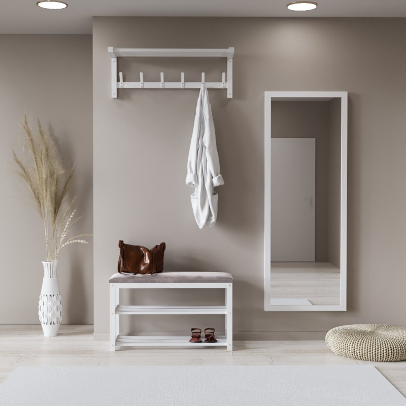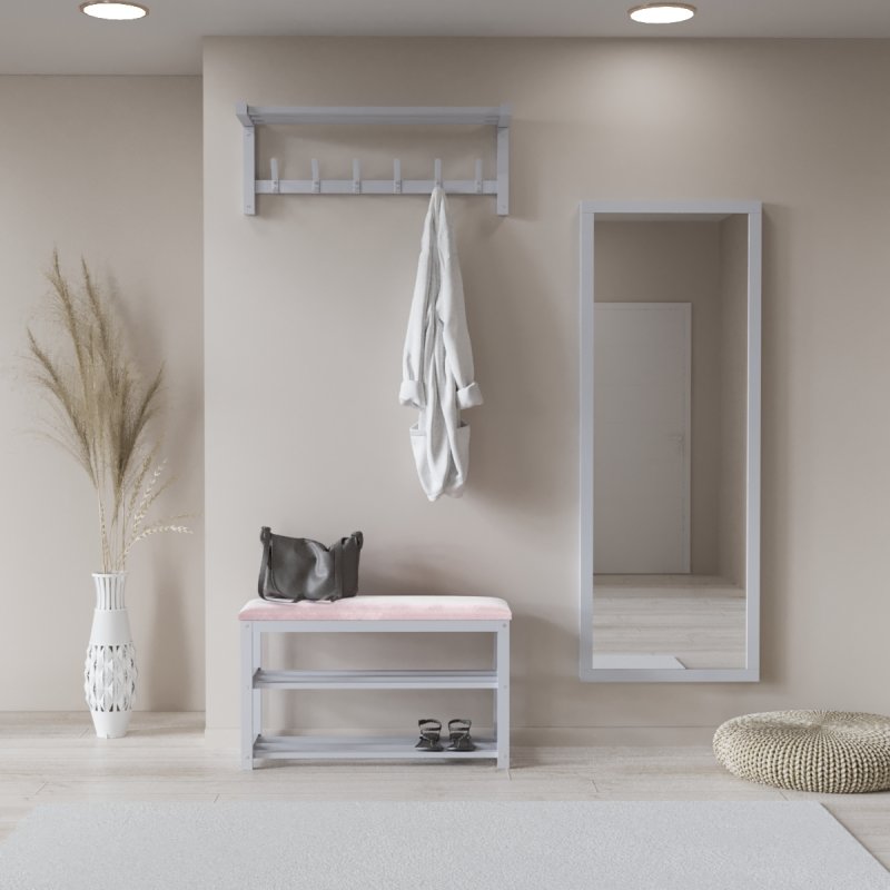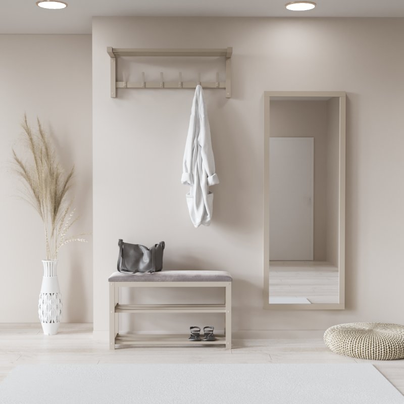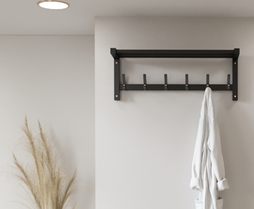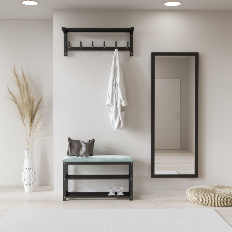 Вішалка в передпокій має благородний зовнішній вигляд і має високі експлуатаційні властивості. З метою забезпечення декоративності та довговічності, дерев'яна частина покрита високоякісним лаком, а гачки – спеціальною порошковою фарбою. Таке оздоблення захищає поверхню від впливу вологи та підвищує зносостійкість виробу в цілому. Нижня частина гачка трохи піднята, тому одяг фіксується надійно і не спадає. Верхня частина - дозволяє повісити головний убір, шарф чи будь-який інший аксесуар. Можете доповнити представлену вішалку іншими незамінними в передпокої елементами, наприклад настінним дзеркалом і банкеткою.