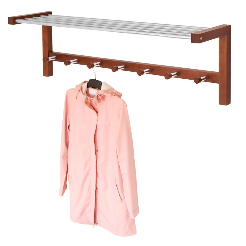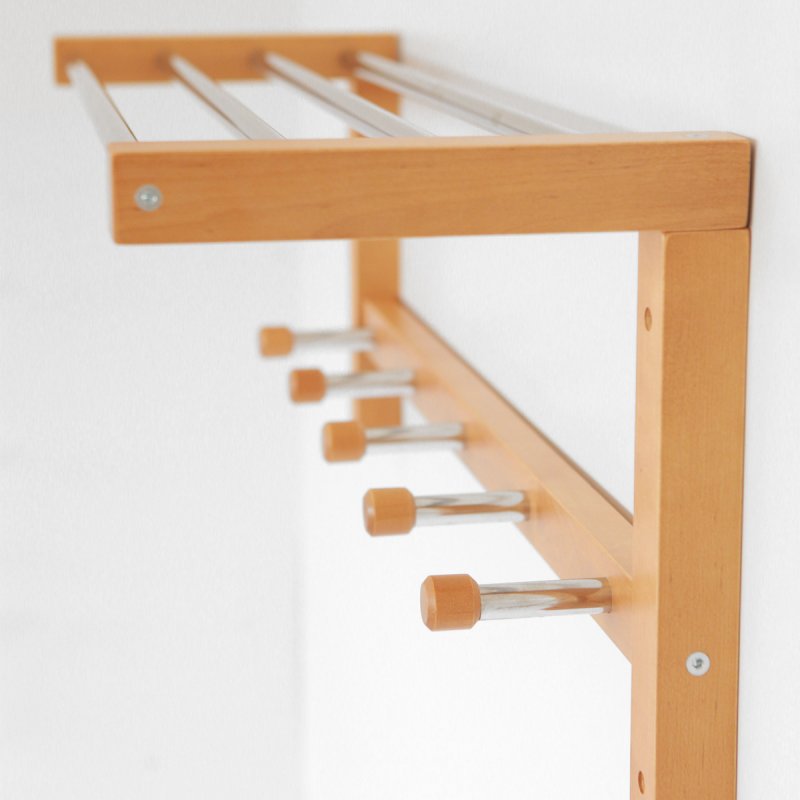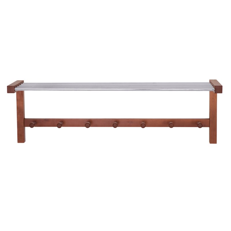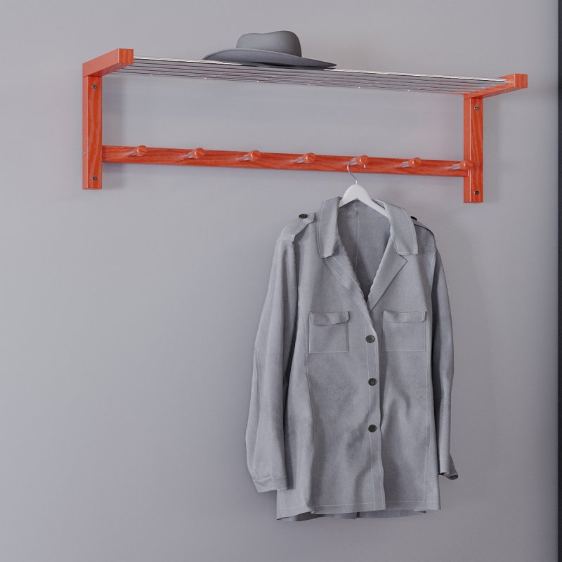 Особливості моделі припускають наявність семи гачків для одягу, а також полицю для головних уборів. Гачки виконані з міцної металевої трубки, яка не прогинається, мають декоративні дерев'яні наконечники, що перешкоджають зісковзування одягу. З таких же хромованих металевих трубок виготовлено верхню полицю. Дана модель вішалки може бути рекомендована для експлуатації в домашніх умовах, це чудова альтернатива громіздкому передпокої. Також можете використовувати її в робочому кабінеті або офісі – стильний зовнішній вигляд та різноманітна кольорова гама дозволяють підібрати виріб під будь-який інтер'єр. Оптимальні габарити виробу не займуть цінної робочої площі, що важливо.