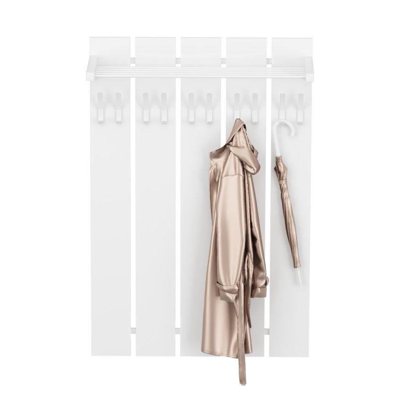 Наша нова модель Прага Біла - оптимальний варіант вішалки в коридор. Вона складається з декількох ЛДСП-панелей, які з'єднані між собою металевими планками, і утворюють досить довгу задню стінку. Ця особливість допоможе вам уберегти стіну від забруднення, стирання, а також намокання мокрим одягом.