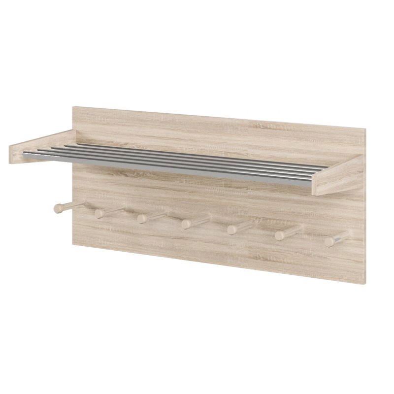 До того ж, на відміну від закритої шафи, дана форма зберігання дозволяє якісно просушити та провітрити речі, що украй важливо для верхнього одягу. Якщо ви бажаєте купити настінну вішалку у складі готової передпокою, рекомендуємо звернути увагу на наші нові розробки: передпокій “Гавана 1” - компактна підставка для взуття ідеально доповнює вішалку за стилем та виконує функцію органайзера. "Гавана 2" - велике настінне дзеркало вдало поєднується з вищезгаданими елементами і надає передпокої завершеного вигляду.