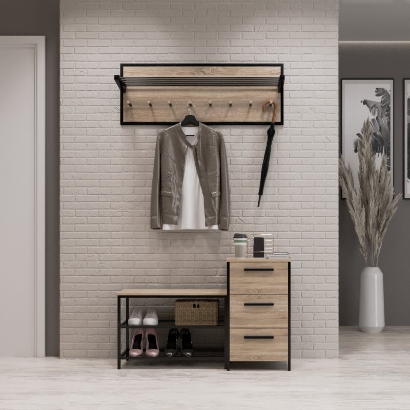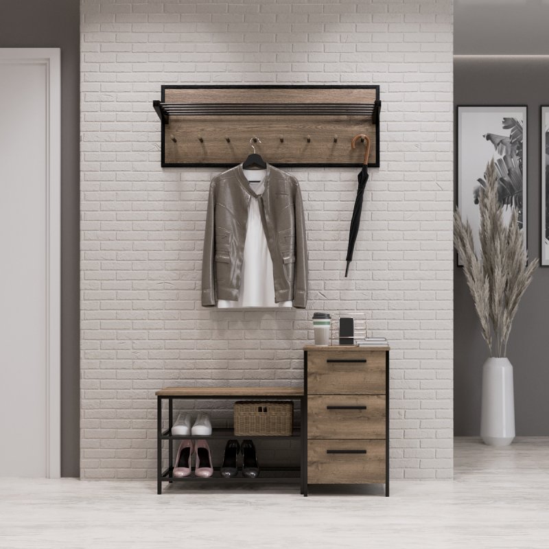 Стильна та практична настінна вішалка “Верона 1” – це ідеальне рішення для всіх, хто бажає організувати вільний та легкий передпокій. Переваги даної моделі полягають у її відносно невеликих розмірах та хороших функціональних можливостях. Особливо доречна дана вішалка буде у невеликих квартирах, де потрібно зберігати одяг усієї родини, але бажано використовувати мінімум меблів. Вішалка для передпокою “Верона 1” – виконана з якісної та безпечної ламінованої ДСП товщиною 16 мм, укладеної у рамку з такого самого матеріалу. Поверхня, що ламінує, забезпечує хорошу вологостійкість і стійкість до стирання в процесі експлуатації, а також надійно закріплює всі елементи композиції.