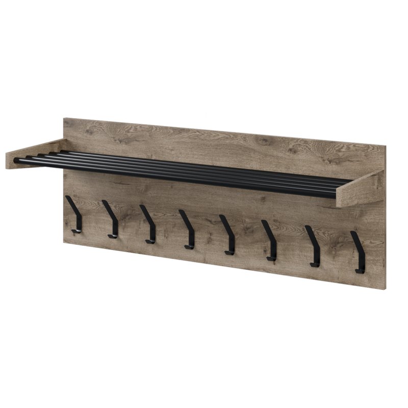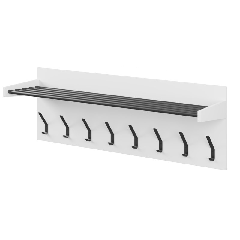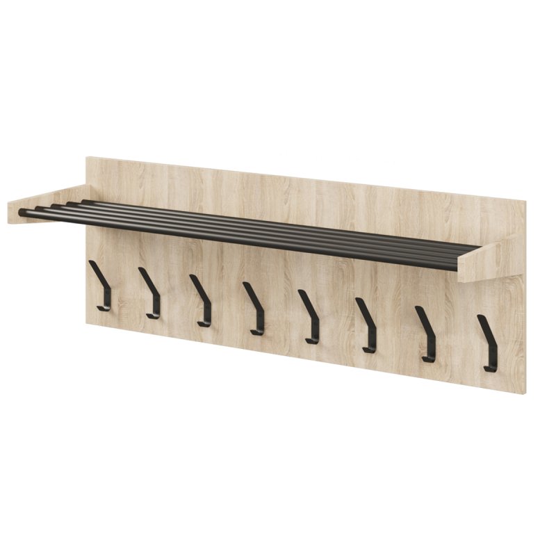 Полиця виконана з п'яти металевих трубок, пофарбованих термофарбою, гарантує довгострокове використання, захищаючи від вологи, вогкості в приміщеннях та інших негативних факторів. Трубки надійно зафіксовані в бічних елементах, тому ви можете сміливо покласти важкі речі або коробки. Надійне настінне кріплення конструкції, місце розміщення якого ви варіюєте самі, залежно від висоти кімнати та переваг. Поверхня з ЛДСП виглядає стильно та сучасно в будь-якому просторі, не відволікаючи уваги від основних об'єктів меблів.