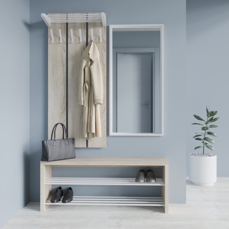Як основний матеріал виробництва ми вибрали ЛДСП товщиною 16 мм. Цей матеріал наділений кількома головними перевагами, які важливі у передпокої: він стійкий до впливу вологи та температури, довговічний без втрати первісного вигляду, безпечний та гіпоалергенний, стійкий до незначних механічних пошкоджень. Меблі для передпокою, наділені вищезазначеними характеристиками прослужать довго і безвідмовно.