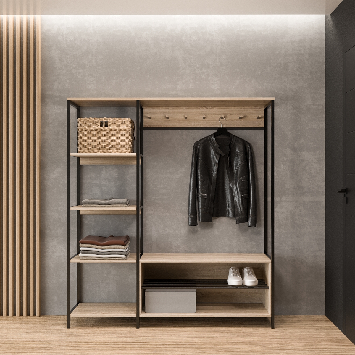 Головна цінність стилю "Лофт" криється в його простоті, за якою проявляється несподівана і комфортна функціональність. Наша нова розробка – передпокій для молодої та сучасної сім'ї, яка йде в ногу з часом, але залишається природною та простодушною.