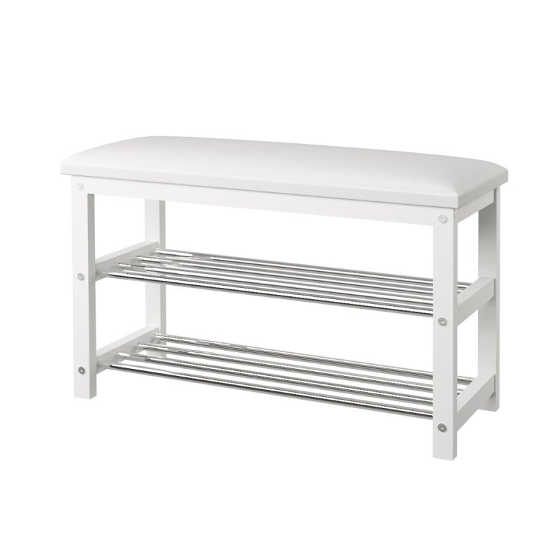 Універсальна банкетка має два горизонтальні яруси, відмінно економить місце в приміщенні і створює сучасний дизайн передпокою. Перевага її відкритої конструкції полягає у великій місткості, що дозволить зберігати велику кількість пар взуття. Приємним доповненням стало розміщення на поверхні м'якого сидіння, що нагадує пуф. Ця модель дуже зручна у використанні для всіх членів сім'ї у процесі взування. Вона виконана з якісних матеріалів, які не схильні до механічних пошкоджень, та практична у догляді.