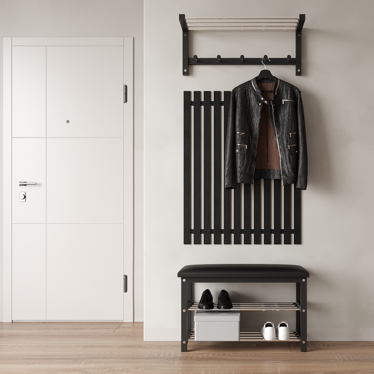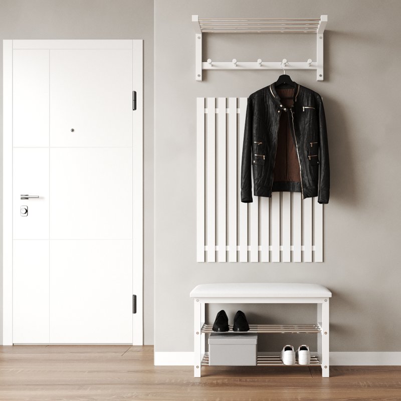 Пропонуємо до вашої уваги універсальний комплект Династія 4. У комплект виробу входить лаконічна банкетка, стильний вішак та сучасні рейки. Компактний вішак відкритого типу розміщується на стіні та має п'ять гачків для розміщення верхнього одягу. Панель з гачками виконана в єдиному стилі та поєднується із загальним дизайном моделі. Це не просто функціональний предмет інтер'єру, а й справжня прикраса вашого холу. Передпокій для квартири виконаний у чорному та білому кольорах на вибір – відмінний вибір для любителів класики та мінімалізму. Такі кольори візуально розширять приміщення та наповнять його світлом.