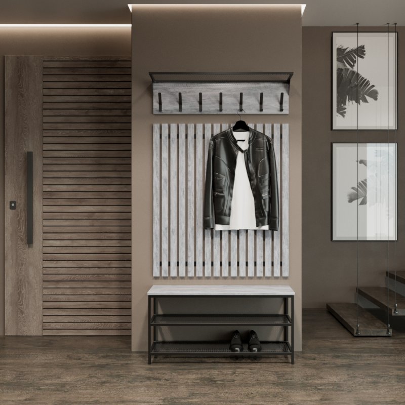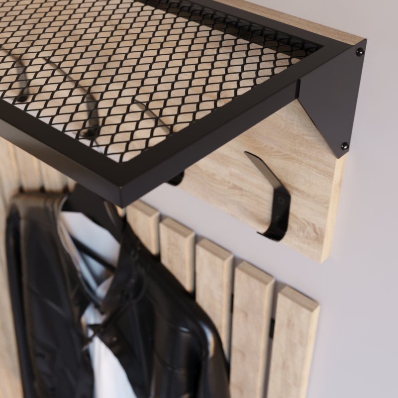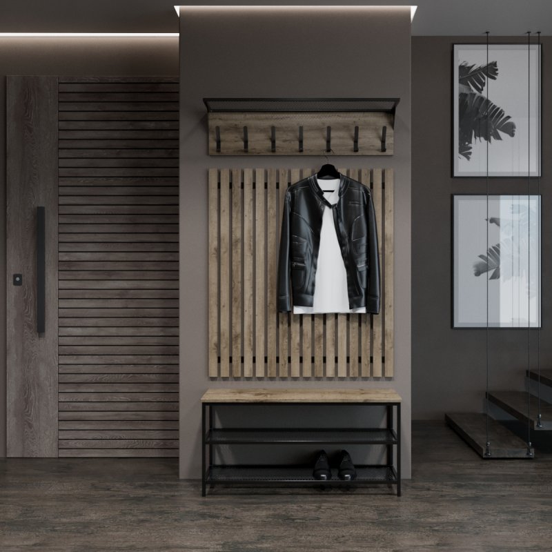 Передпокій Ембер 4 виготовлений у стилі Лофт з металу та ЛДСП. Вироби з таким поєднанням матеріалів відрізняються міцністю та довговічністю. Легкі у догляді поверхні забезпечать ідеальний вигляд навіть при активному використанні.