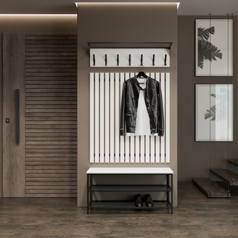 Компактний настінний вішак для верхнього одягу, банкетка та полиця для аксесуарів - обов'язкові елементи сучасного передпокою. Правильно підібрані меблі допоможуть зберігати речі в порядку, створюючи відчуття чистоти і простору. А рейки додадуть стилю та захистять стіни від забруднення.