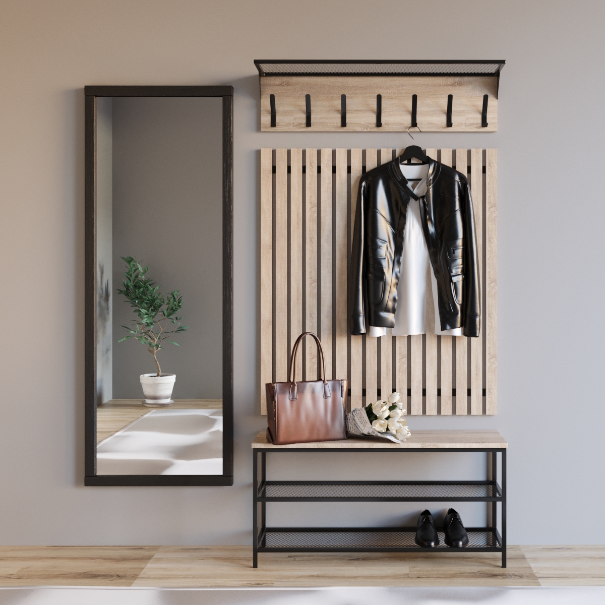 Передпокій у стилі “лофт” “Ембер 1” створений для молодих і динамічних людей, які віддають перевагу сучасному ритму життя. Цей комплект меблів для передпокою включає чотири важливі елементи, які допоможуть практично і компактно зонувати інтер'єр першої кімнати.