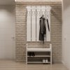 Великий настінний вішак Прага підійде для великої родини, де багато одягу та інших речей. Вішак складається з кількох окремих ЛДСП, які з'єднані між собою двома металевими планками. Полиця для аксесуарів виготовлена з металевих трубок, а бічні елементи – з натурального масиву берези. Дерев'яні деталі пофарбовані захисним та декоративним лаком, а металеві частини – порошковою фарбою білого кольору.