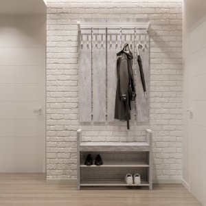 Великий настінний вішак Прага підійде для великої родини, де багато одягу та інших речей. Вішак складається з кількох окремих ЛДСП, які з'єднані між собою двома металевими планками. Полиця для аксесуарів виготовлена з металевих трубок, а бічні елементи – з натурального масиву берези. Дерев'яні деталі пофарбовані захисним та декоративним лаком, а металеві частини – порошковою фарбою білого кольору.