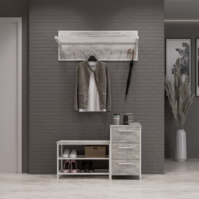 Передпокій із підставкою для взуття «Панама» створить загальну атмосферу затишку та тепла у вашому будинку. Сучасна модель включає стильний вішак і універсальну підставку для взуття. Комплект представлений у п'яти класичних кольорах: білий, чорний, дуб сонома, урбан та аліканте. Вони дозволяють створити атмосферу легкості у поєднанні з простотою та вишуканістю, а також доповнити будь-який інтер'єр. Перевагою настінного вішака є компактність та універсальність: він сміливо підійде для великої родини, а розмістити його можна у будь-якому куточку кімнати. Розмір вішака (ВхШхГ): 400х1080х270 мм.Передпокій у коридор із масиву берези – екологічний, практичний, ергономічний, а головне – довговічний вибір для вашої родини.