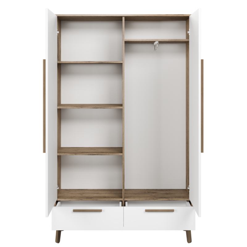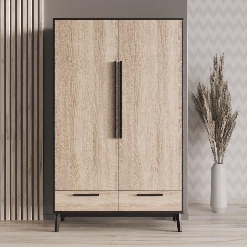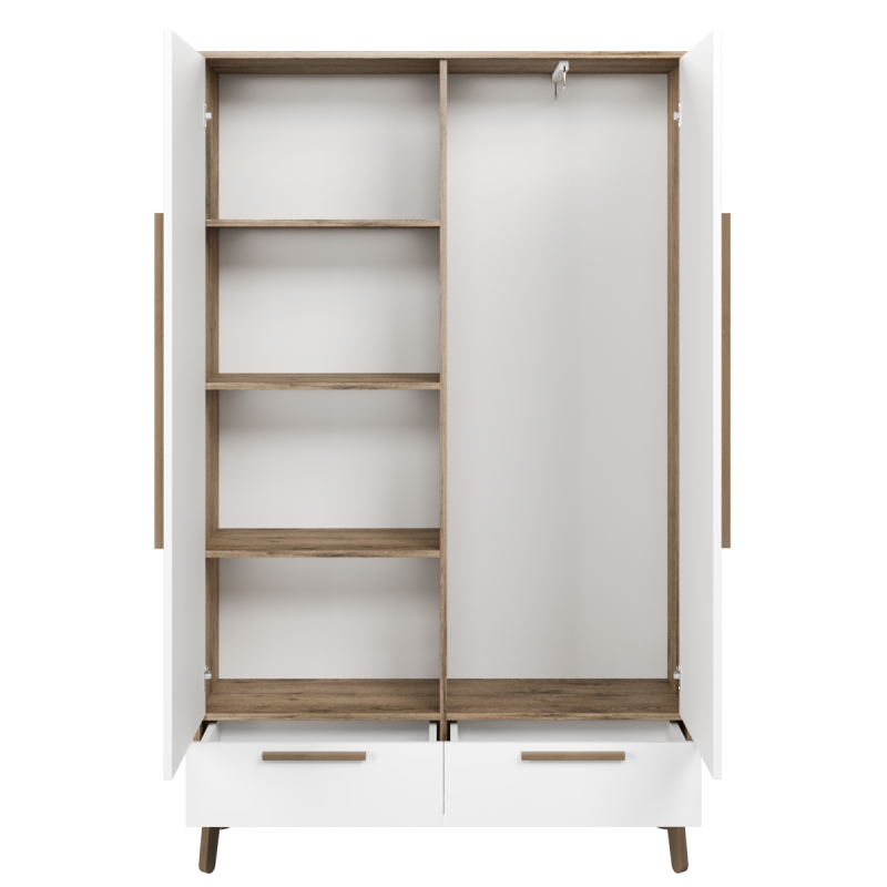 Шафа в кімнату представлена у трьох популярних на сьогодні кольорах: білий, білий/аліканте, білий/дуб сонома, чорний/дуб сонома, аліканте/чорний. Такі кольори не тільки додадуть свіжості та світла, а й візуально розширять ваш інтер'єр. Покрита шафа в кімнату двокомпонентним поліуретановим лаком, що є стійким до різних впливів та надає виробу довговічності.