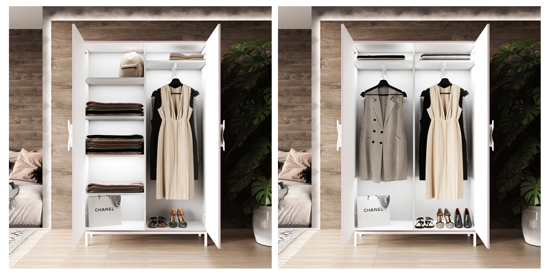Розмір шафи (ВхШхГ): 1820x1140x400 мм. Він є не лише функціональним доповненням до спальні, а й прикрасою всього інтер'єру. Виріб чудово виглядатиме як біля стіни, так і в будь-якому іншому місці кімнати. Продумане внутрішнє наповнення шафи дозволяє зручно розмістити одяг, аксесуари, взуття усієї сім'ї як разом, так і поділивши на персональні відділення.