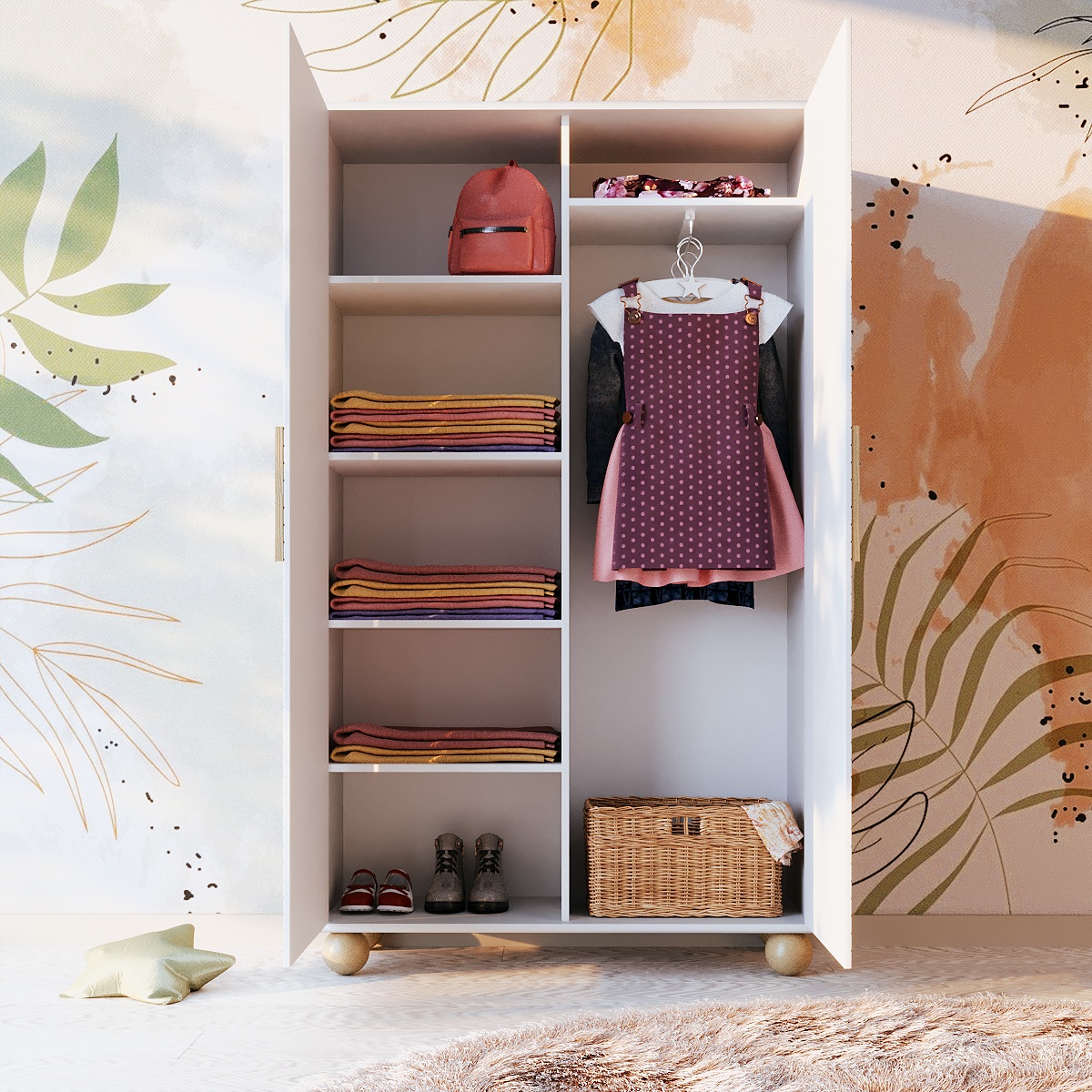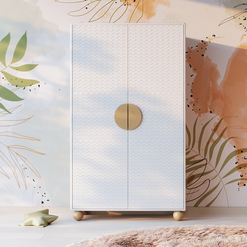 Дитяча кімната – перший особистий простір вашого малюка. Кожен люблячий батько, бажаючи своєму чаду тільки найкращого, довго і ретельно продумує кожну дрібницю під час облаштування приміщення. Комфорт, безпека, простота в експлуатації та гарний дизайн є основними критеріями при виборі меблів для дитини. Біла шафа в спальню Симба на чотирьох круглих ніжках ідеально підходить за всіма параметрами.