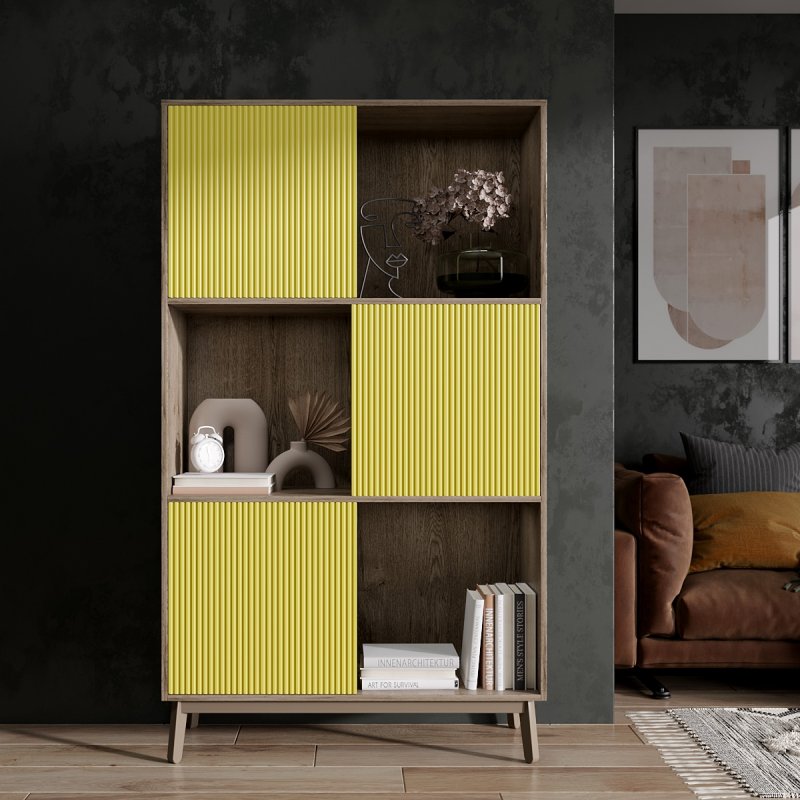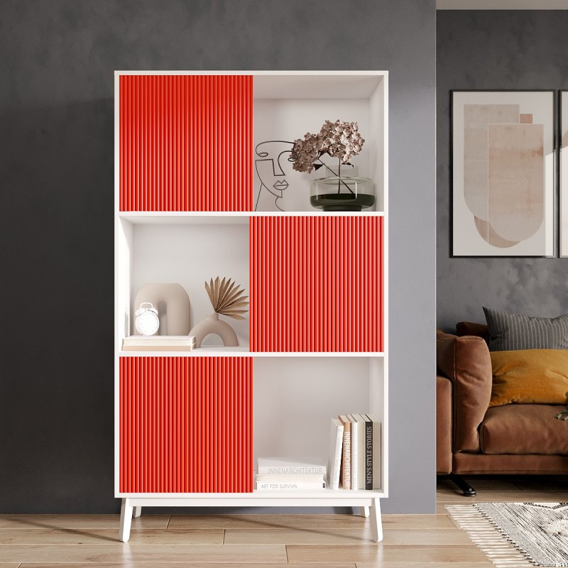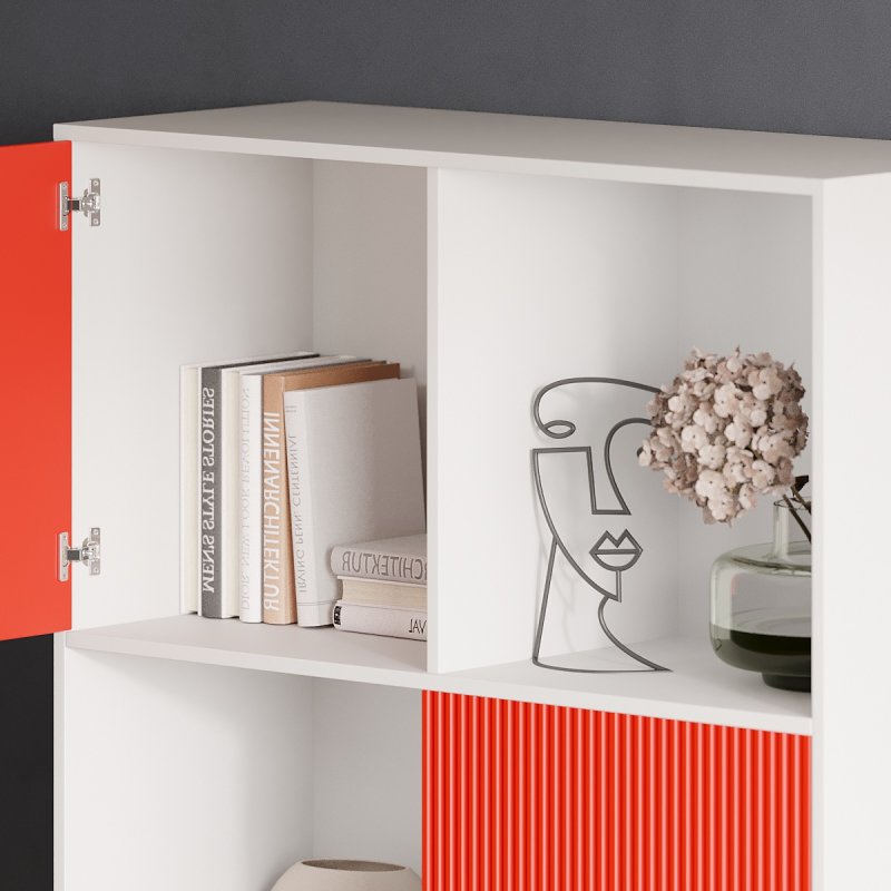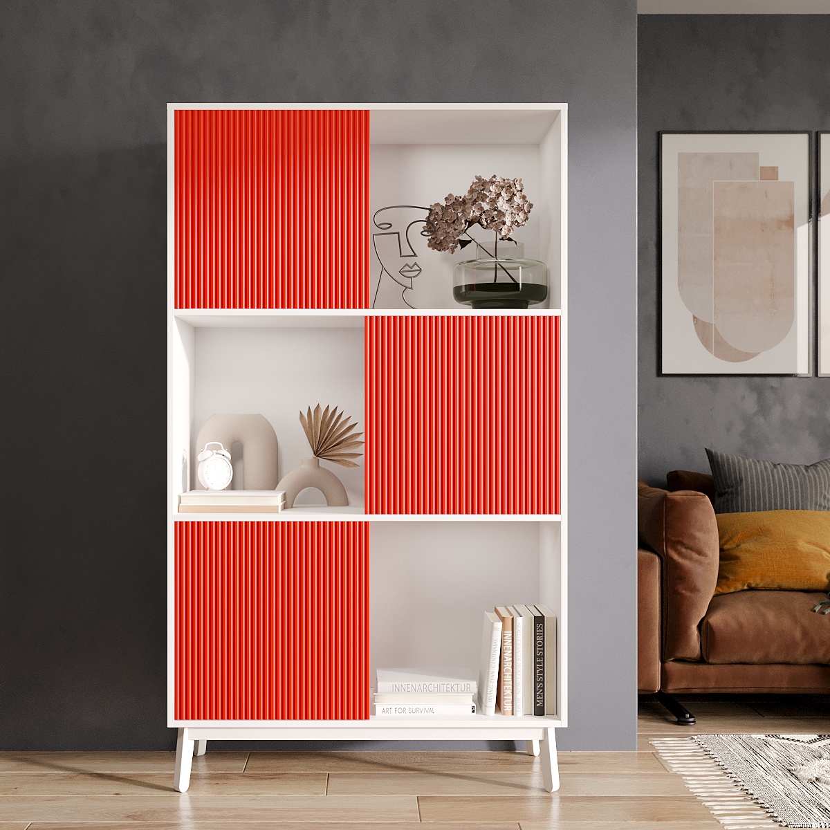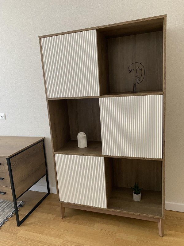 Незвичайний стелаж виконаний з ЛДСП, МДФ та натурального дерева, масиву берези. Фарбовані фасади з гофрованою структурою в десяти варіаціях кольору, основа представлена в трьох варіантах. Класичні поєднання чорного та білого, барвисті та пастельні тони, ми підібрали комбінації на будь-який смак.