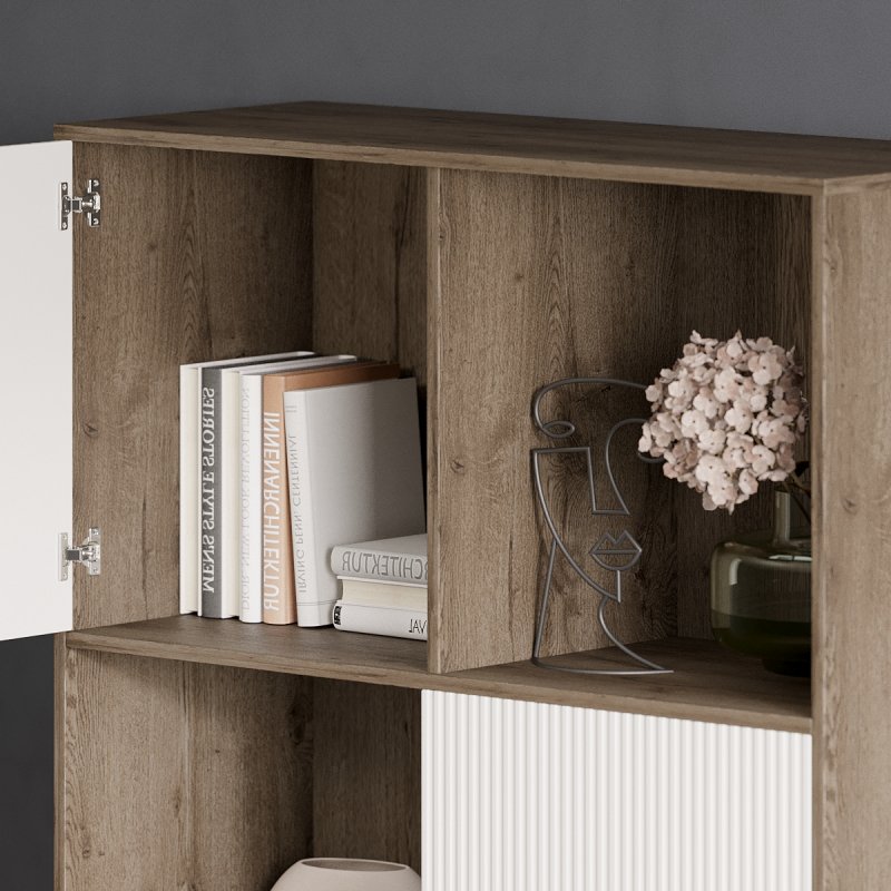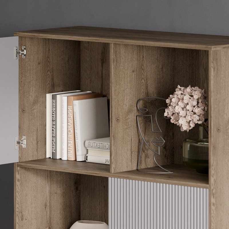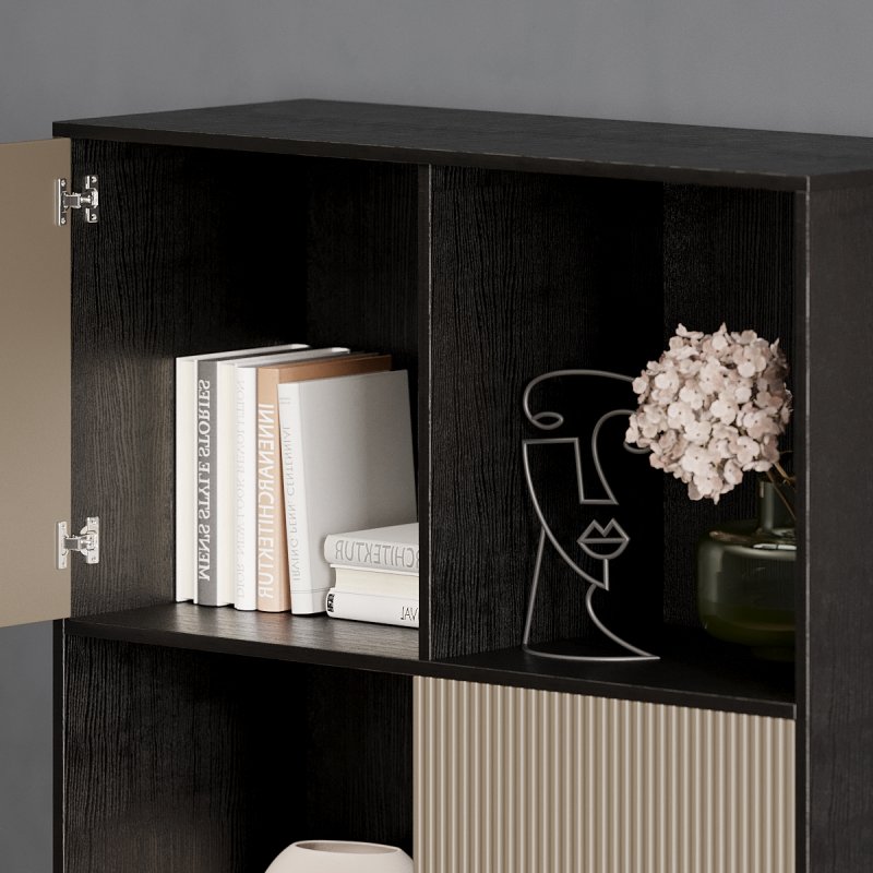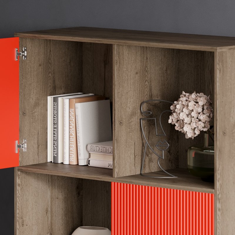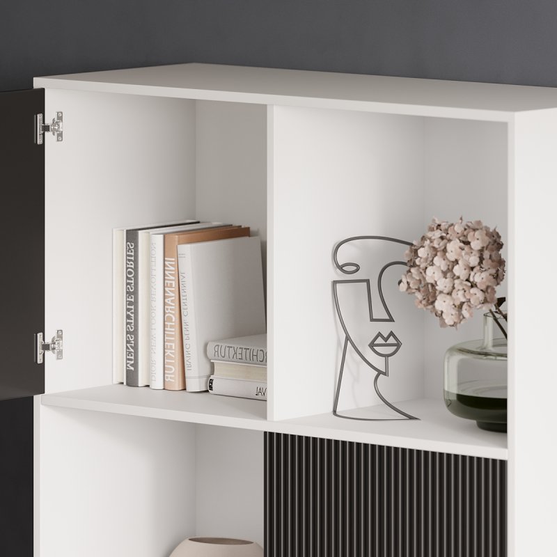 Дуалізм у меблевих виробах завжди виглядає інтригуюче. Такі предмети зможуть внести корективи до будь-якого інтер'єру - красиво обіграти його, освіжити та доповнити. Стелаж Бокко створений бути родзинкою вашого будинку, але також він ергономічний у використанні. Зберігайте ваші речі у відкритих полицях – гарний декор, вази чи книги. А те, що хотілося б сховати з видимості - помістіть у закриті полиці з пуш-ап системою, фурнітура працює від натискання.