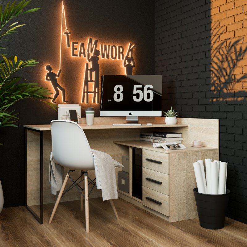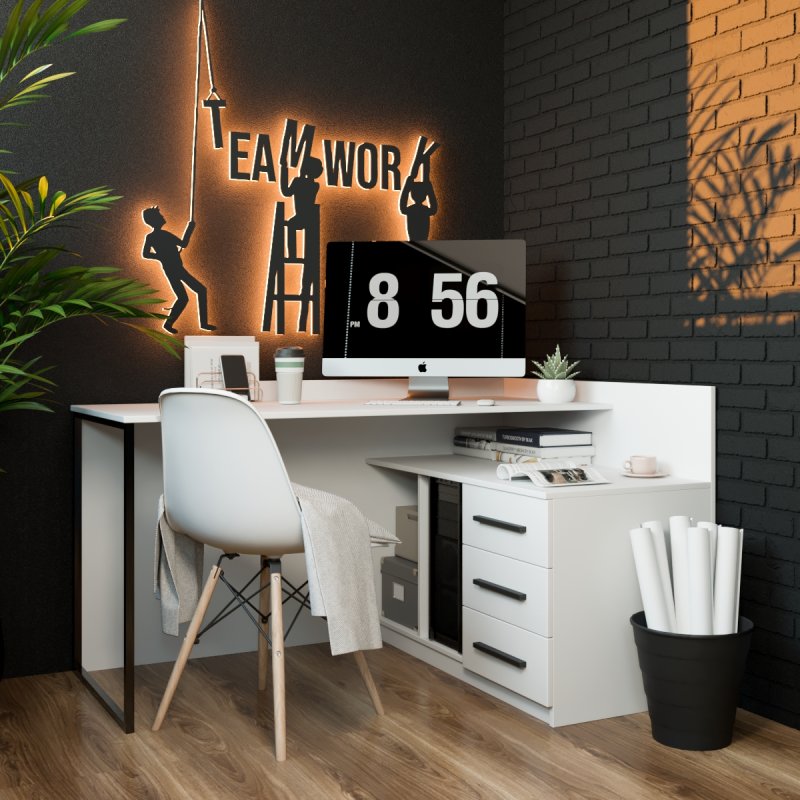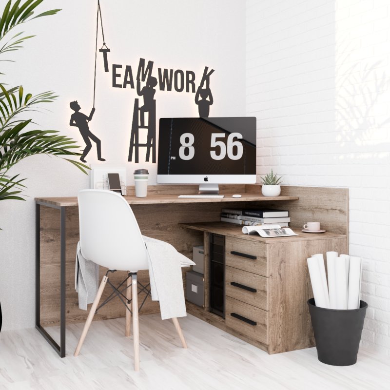 Завдяки великій поверхні Ви можете організувати кілька робочих зон: одну частину столу використовувати для комп'ютера, а іншу для зберігання документів. Це особливо зручно для тих, хто одночасно виконує кілька завдань. Стіл Флеш виглядає стильно та сучасно, забезпечуючи при цьому максимальну функціональність. Він чудово підходить для малих приміщень, адже займає кут кімнати, який часто залишається незадіяним.