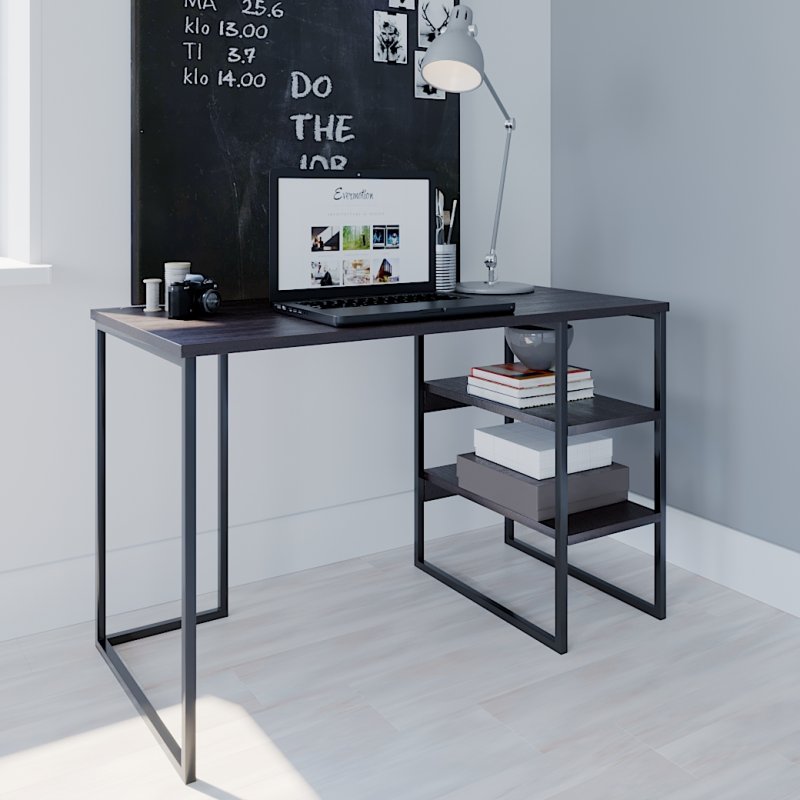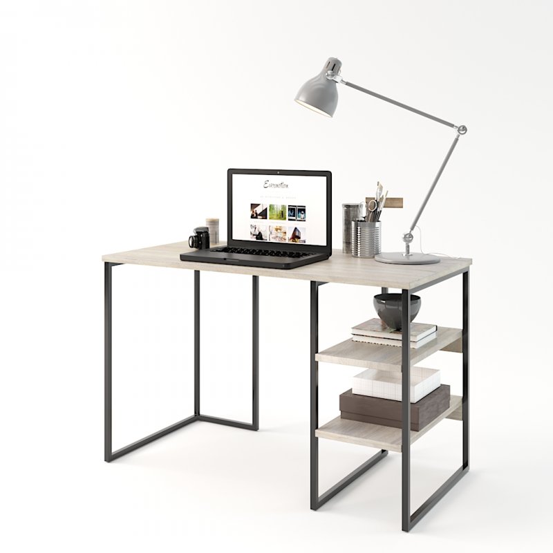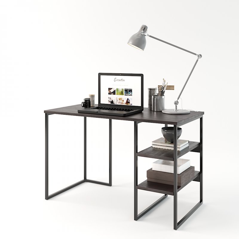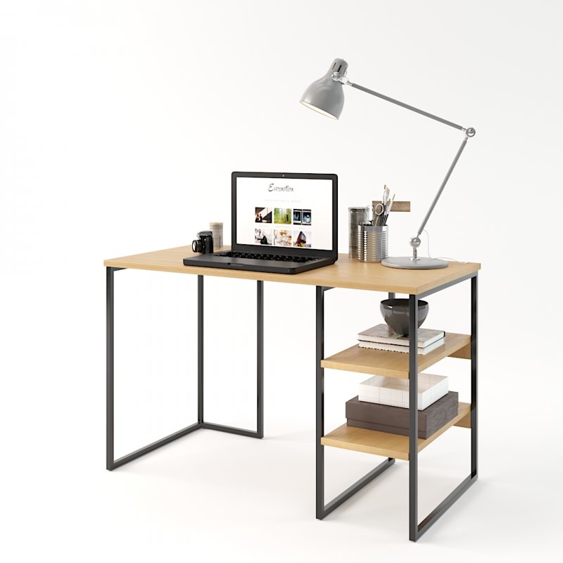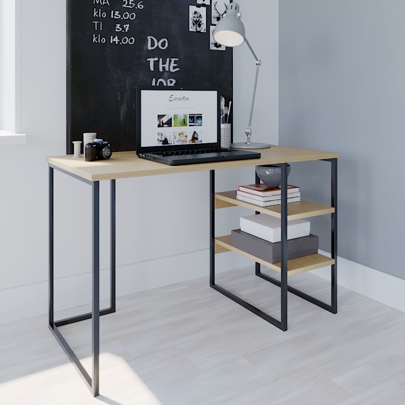 Дана модель за стилем чудово впишеться в домашній інтер'єр або офісний кабінет. Широка стільниця дозволяє розмістити все необхідне для навчання/роботи: ноутбук, книги, настільна лампа і т.д. Відкриті місткі полиці біля основи столу створюють додаткове місце для зберігання лотків із документами та літератури.