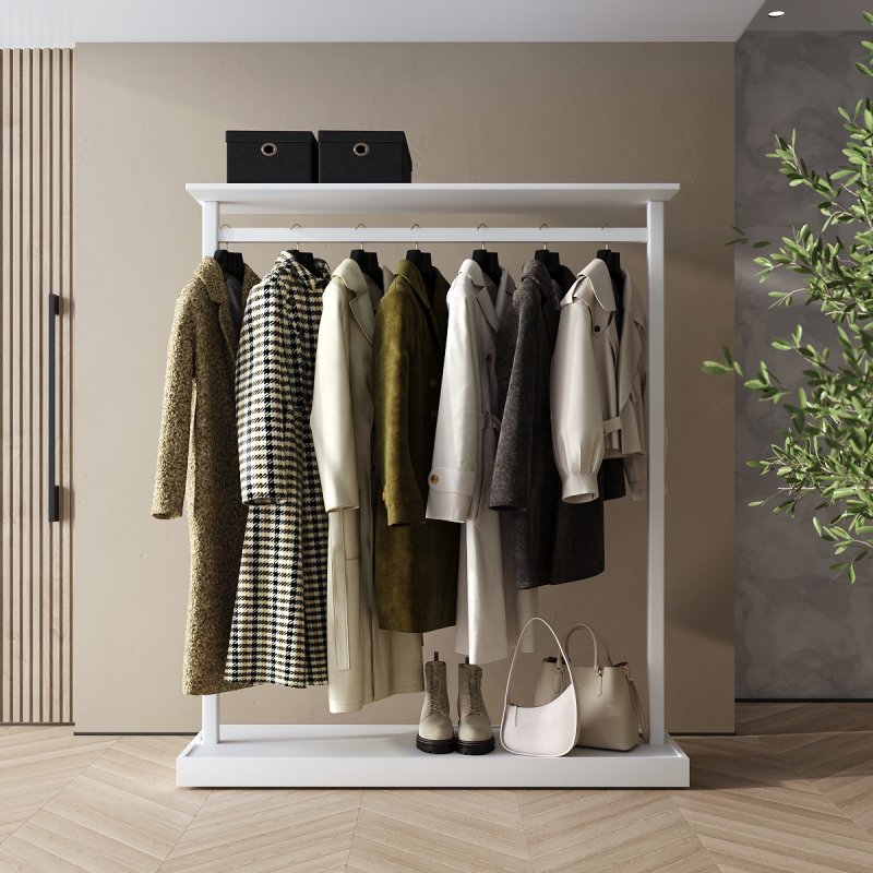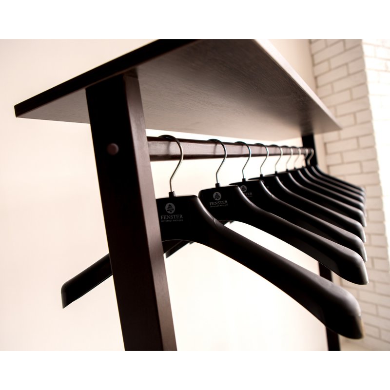Основа виконана у вигляді суцільної полиці для взуття. Це ще один плюс виробу. Зберігати змінне взуття стає комфортно та практично. Доступ до одягу простий та зручний. Розвішаний одяг завжди краще провітрюється, від чого його якість і властивості не втрачаються з часом. Купити вішак для одягу за найкращою ціною Ви можете лише у нашому магазині. Компанія «Фенстер» вже давно стала відомою серед виробників підлогових вішаків і улюбленою за високу якість своєї продукції та найнижчі ціни в Україні.