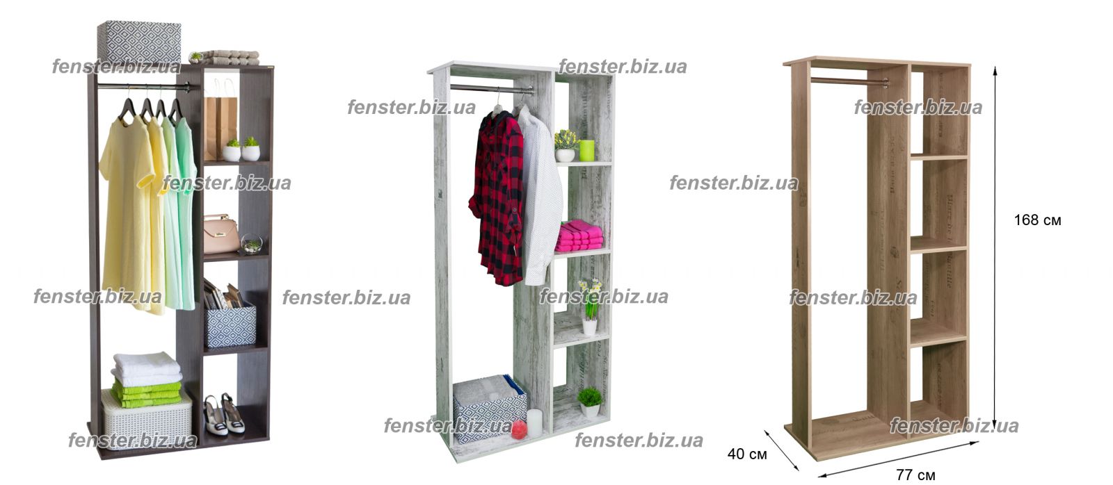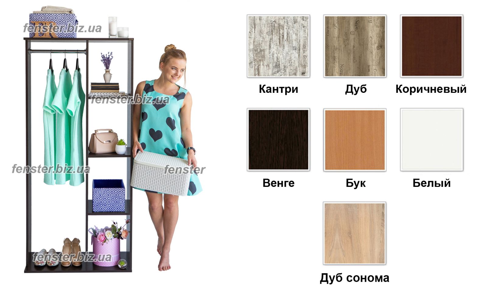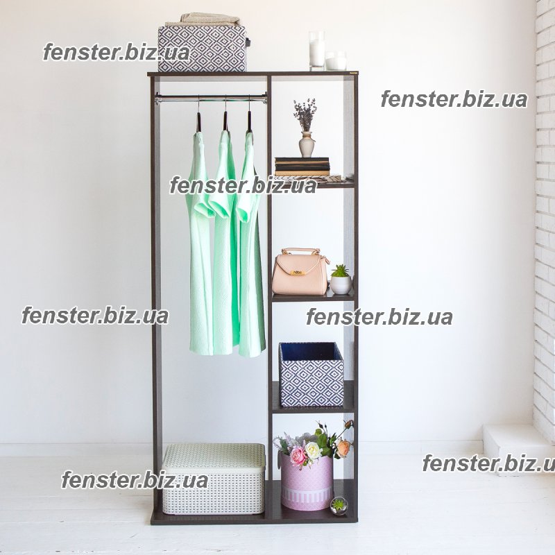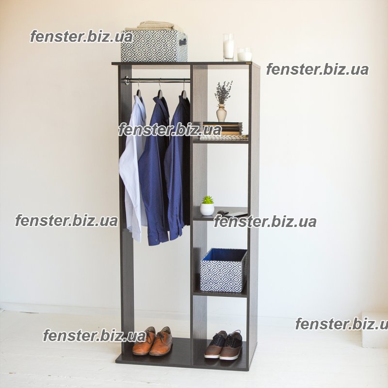 Вішалка дерев'яна для підлоги даної моделі виробляється в чотирьох кольорах, що в свою чергу дає Вам можливість більш точно потрапити в колірну гамму Вашого інтер'єру. Ця стійка виконана з високоякісної ДСП з металевою трубкою, на якій за допомогою плічок Ви зможете розмістити більшу частину Вашого гардеробу. Плічка Ви також можете придбати у нашому інтернет-магазині. Важливим плюсом є наявність п'яти полиць для взуття, одягу та інших речей. Ця вішалка-стійка зверху накрита аналогічною основою плитою, що захищає одяг від осідання на ній пилу, а також може послужити додатковою полицею для розміщення чогось, що не знайшло собі місця на інших полицях.