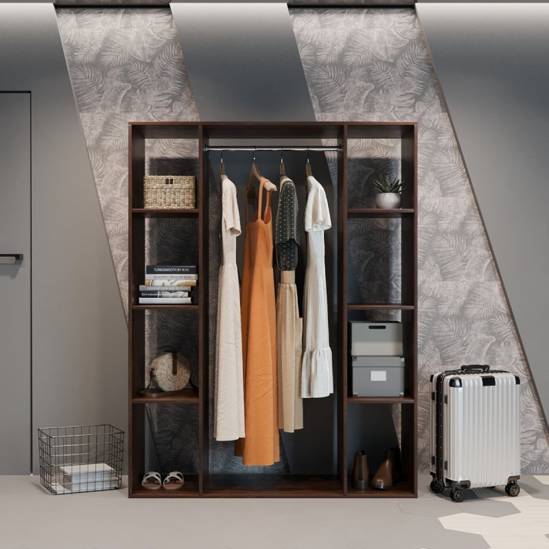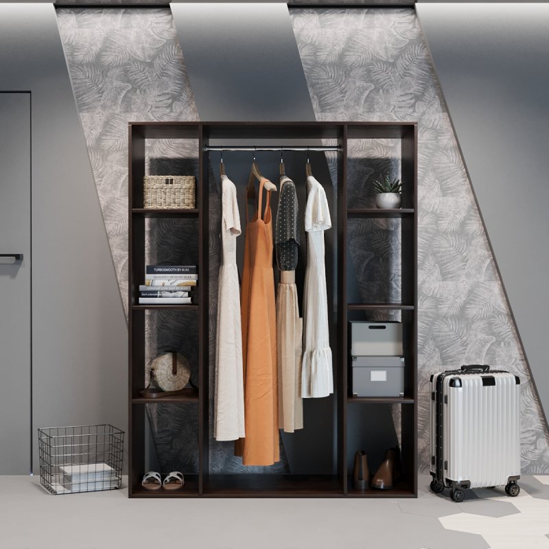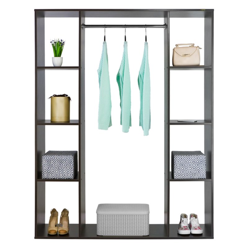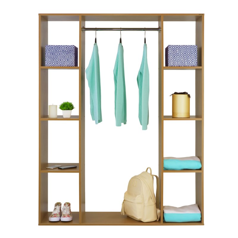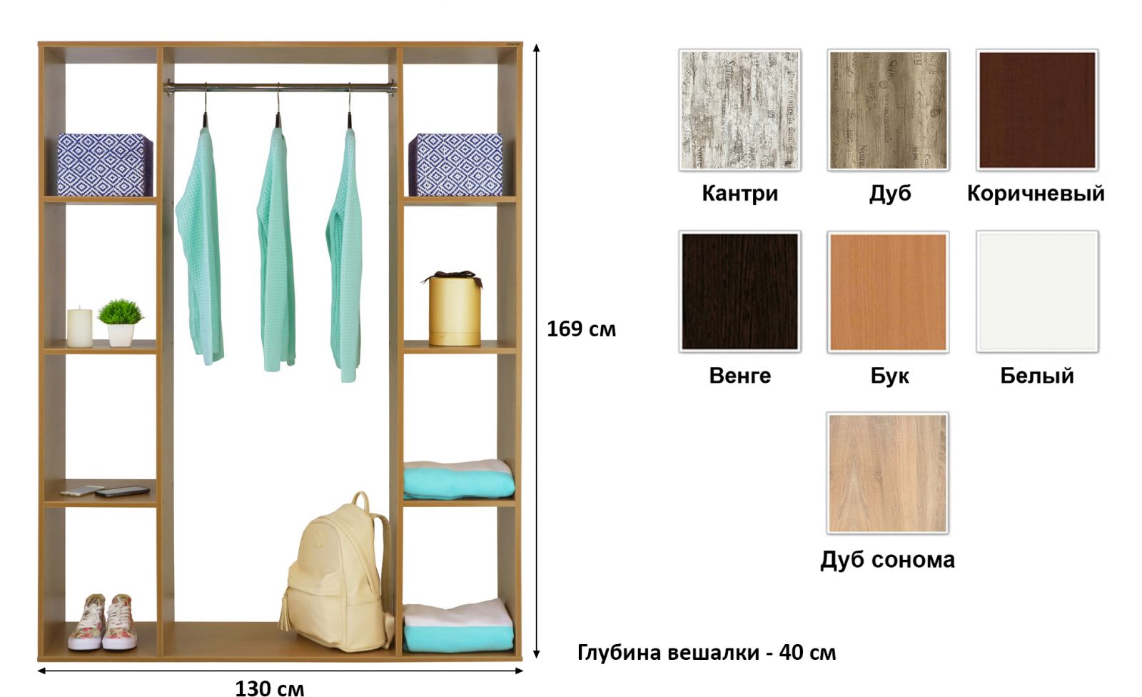 Сьогодні існує безліч видів вішалок для зберігання одягу та розміщення товарів побутового призначення. Особливо популярними останнім часом стали універсальні відкриті шафи, конструкції яких складніші і дозволяють розміщувати на заощадженні не тільки одяг, а й інші речі, наприклад взуття, головні убори, вазони, книги та інше. У колекції товарів серії "Галлант" з'явилася нова універсальна модель "Галлант 4В", розроблена для експлуатації не тільки в домашніх умовах як відкрита шафа, але і для сучасного офісу. Вішалка має розбірну конструкцію, виготовлена з міцного та якісного ДСП, а також металевої перекладини для плічок. Ми пропонуємо Вам досить широку гаму варіантів кольору ДСП: білий, бук, дуб, коричневий, кантрі та венге, що дозволить Вам отримати виріб, що найкраще підходить у ваш інтер'єр.