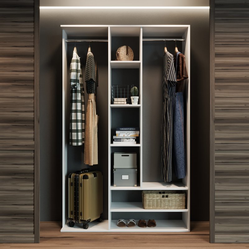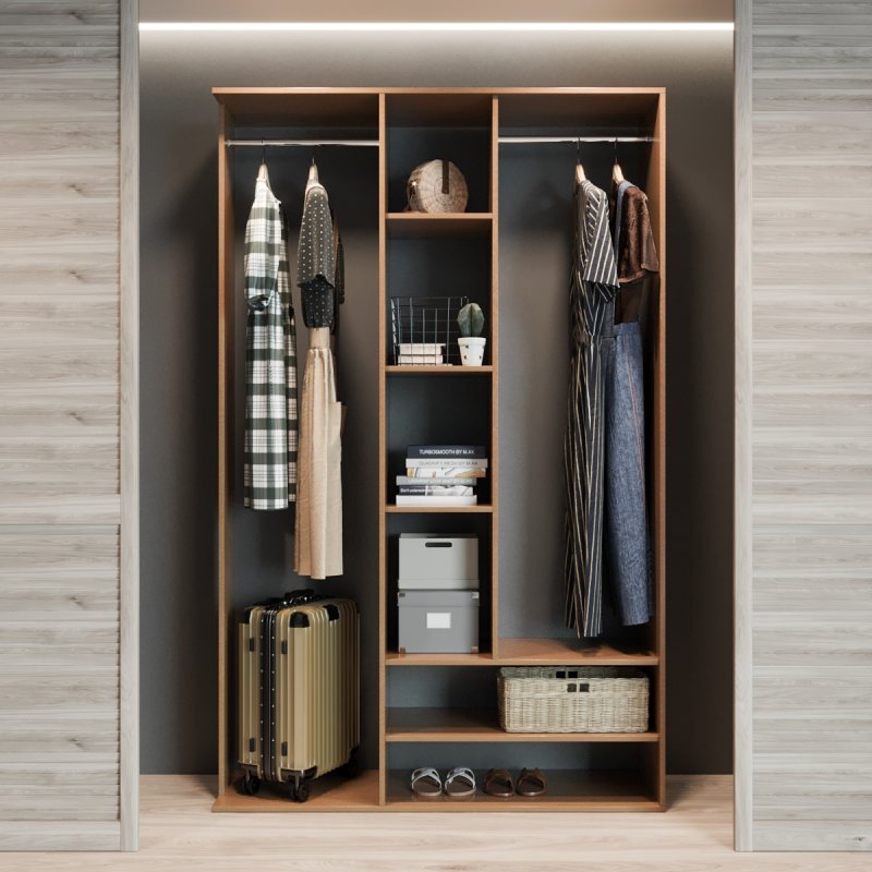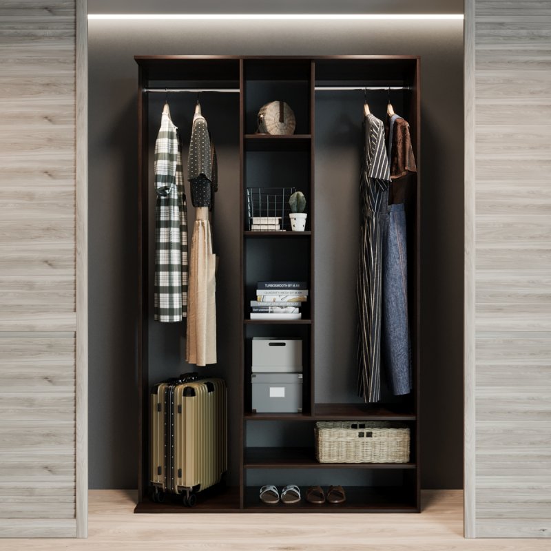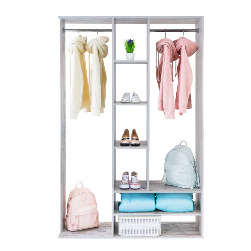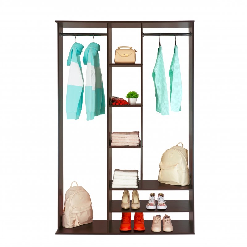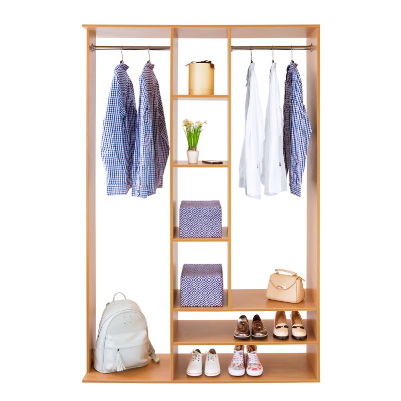 Особливого значення зараз набуває відкрита шафа, яка поєднує в собі функціональні можливості традиційної шафи і в той же час завдяки особливостям конструкції залишає місце для оригінального її оформлення. Новинка виробництва - стійка для одягу “Галлант 5”, на відміну від “Галлант 3А” та “Галлант 3В”, має вдосконалену конструкцію та доповнена двома поличками для розташування взуття. Вона чудово підійде для тих, хто бажає упорядкувати свій будинок та забезпечити комфортне зберігання свого гардеробу. Вішалка виконана з високоякісного ДСП у наступній кольоровій гамі: бук, венге, дуб або кантрі. Габаритні параметри виробу (ВхШхГ) 204x130x40 см. Конструкція стійки розроблена таким чином, що має дві секції для зберігання речей на тремпелях. Висота стійки дозволяє легко розташовувати на плічках подовжені речі. Хромована штанга дуже міцна і надійна, виготовлена з порожнистої труби товщиною 1,5 мм і діаметром 25 мм, що гарантує витримування важкого зимового одягу. По центру шафи розташований стелаж для розміщення білизни, речей чи іншого.