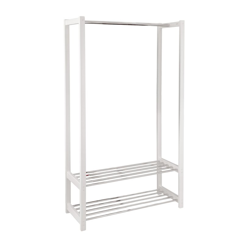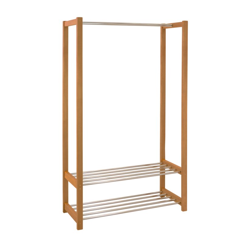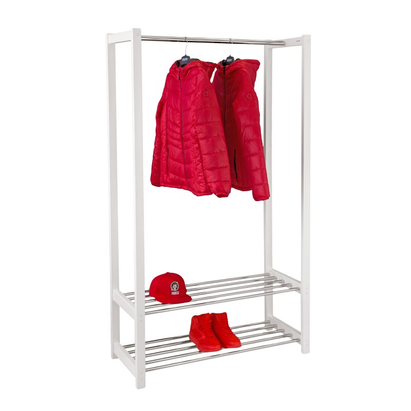 Часто ми стикаємося з невеликим розміром передпокою. Але тим не менш, проблему розміщення одягу вирішувати все ж таки потрібно. Вихід із становища – поставити у передпокої стійку для одягу. Наші дизайнери розробили модель стійки для одягу спеціально для невеликих передпокоїв. Це модель Люкс. Вона являє собою дерев'яну стійку з поперечиною для плечиків і двома поличками для взуття. Тобто ця вішалка одночасно вирішує дві проблеми: розміщення одягу та розміщення взуття у передпокої. Висота поличок передбачає можливість поставити на них високі черевики. Модель Люкс є ідеальним рішенням для передпокою, оскільки поєднує функції полиці для взуття і стійки для одягу. Таким чином, купуючи один виріб, ви повністю оснащує свій передпокій усім необхідним.