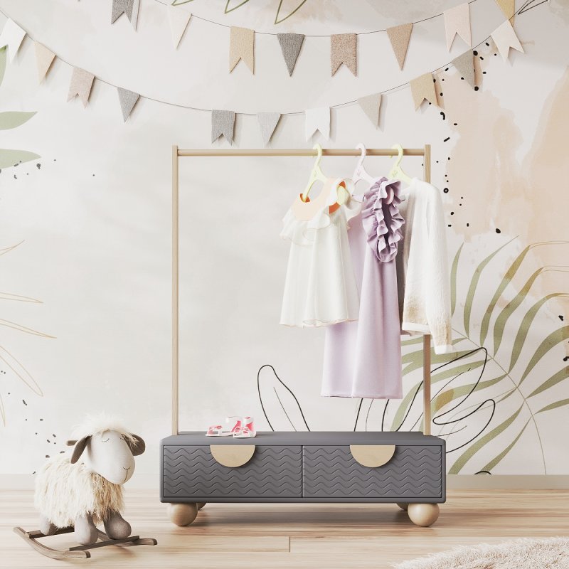 Вішак для дитячих речей - це завжди доглянутий та охайний вигляд ваших дітей. Транспортування стійки - легке та не докладає зусиль. Опора міцна і стійка, а одне із запропонованих колірних рішень, безперечно, сподобається вашій дитині і приємно впишеться в інтер'єр дитячої кімнати. Конструкція розбірна, що робить дерев'яну вішалку зручною при транспортуванні та доставці.