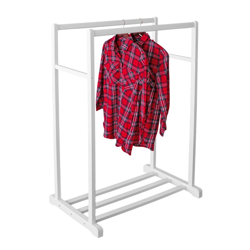 Вешалка «Визит-2» универсальный вариант для магазинов, торгующих верхней одеждой. Благодаря двум раздельным горизонтальным карнизам под плечики Вы сможете развесить всю свою продукцию и выставить её на показ в аккуратном виде. Деревянная стойка так же подойдёт и для приёма большого количества посетителей. Несколько таких вешалок в холле без труда справятся со всей верхней одеждой Ваших гостей.
