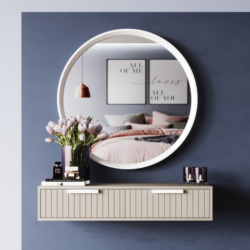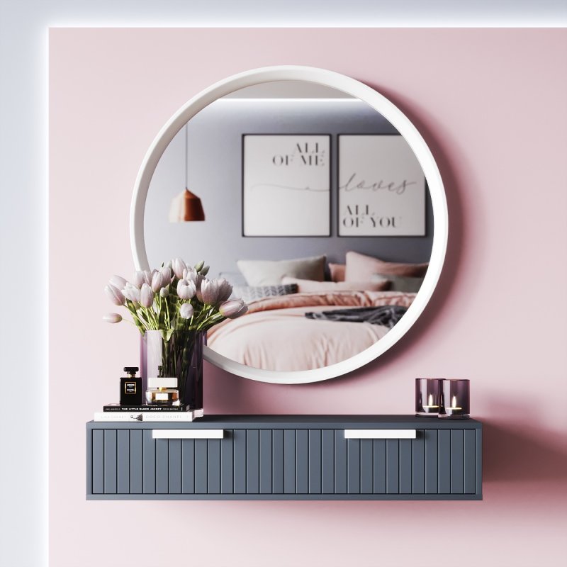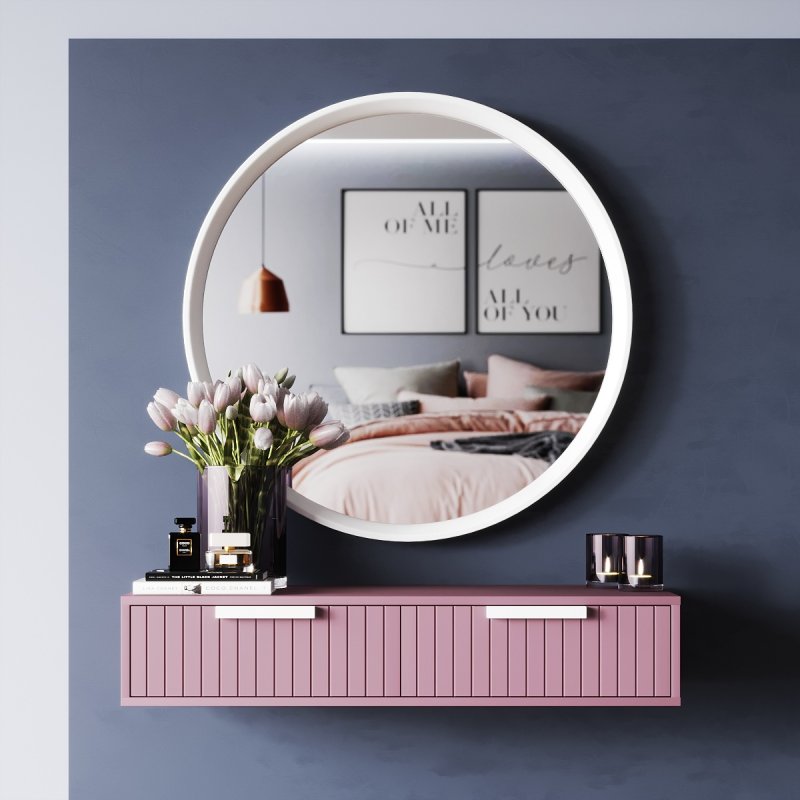 Туалетний стіл навісний оснащений двома висувними ящиками, в яких поміститися вся косметика, креми, аксесуари, прикраси та інші жіночі штучки. А робочу поверхню можуть прикрасити різні предмети декору, гарні книги чи дорогі парфуми. Навісне трюмо з дзеркалом можна доповнити м'яким пуфом, який зручно буде засунути під стільницю, заощаджуючи простір. Великий вибір різноманітних моделей представлений у розділі «Банкетки».