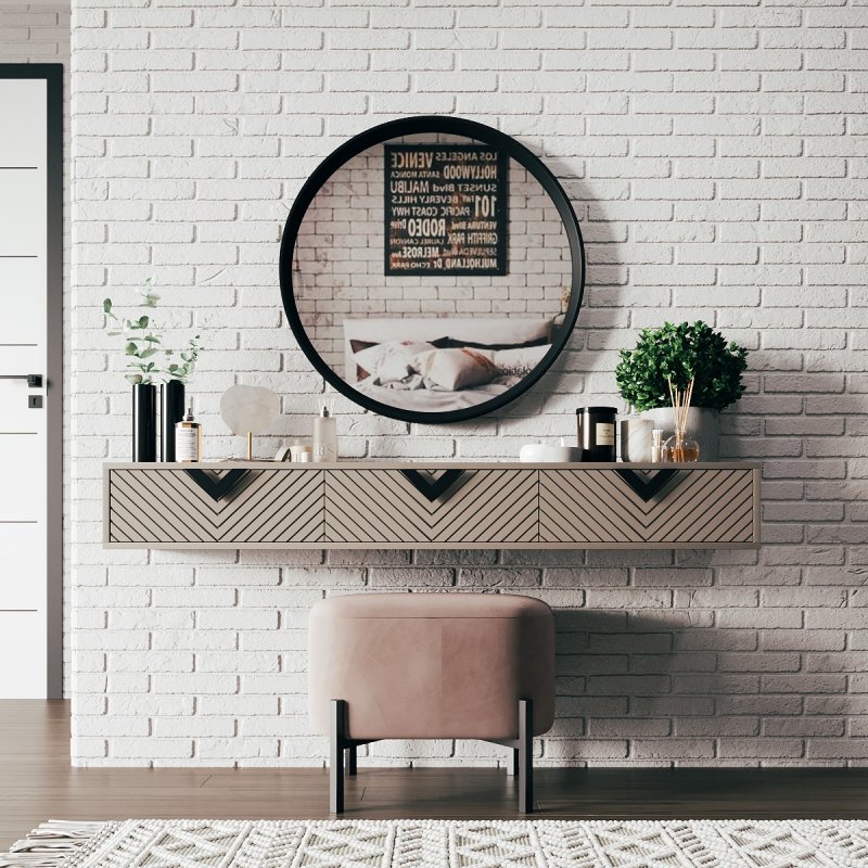 Трюмо Оксфорд 5 – це поєднання бездоганного стилю та максимальної функціональності. Ця модель включає столик, дзеркало і пуф. Навісний туалетний столик відрізняється компактністю та зручністю прибирання. Відсутність ніжок надає йому легкості та легкості. А наявність трьох ящиків допомагає в організації робочого простору та підтримці порядку. Розміщувати навісне трюмо із дзеркалом найкраще біля вікна, для отримання максимального освітлення.