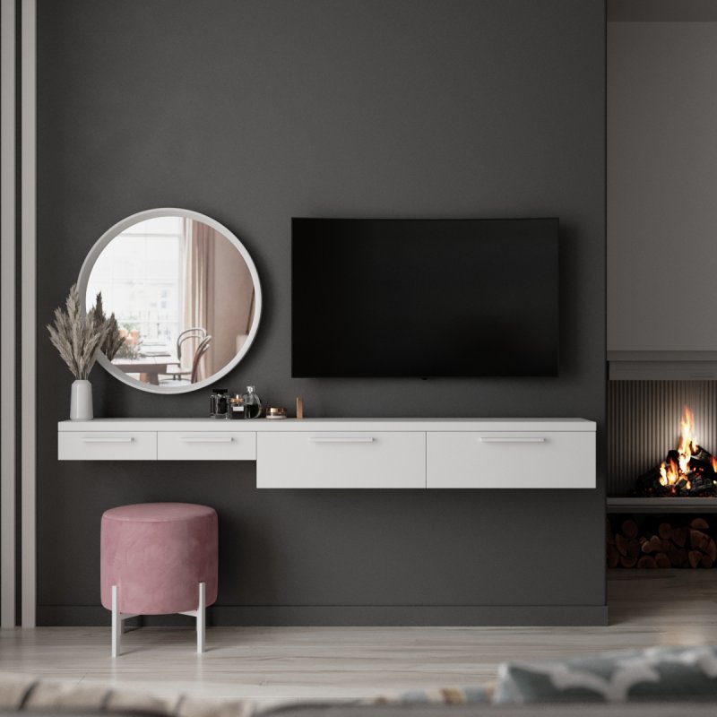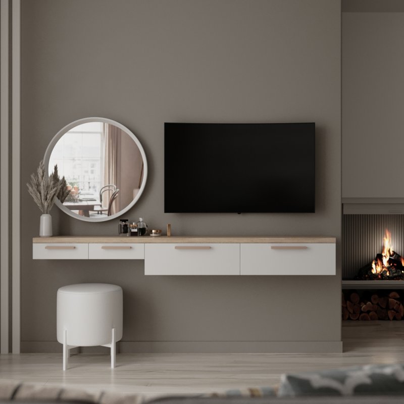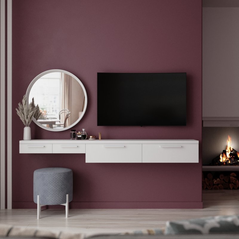 Комплект меблів у вітальню "Данія 1" недарма названий на честь королівства. Складові гарнітуру виконані якісно і з королівським шиком, який проявляється в деталях. Купити меблі в передпокій - не таке просте завдання, якщо тільки вони не виконані максимально ергономічно: навісний сучасний столик, стильний пуф і дзеркало круглої форми. Але ми полегшимо вам це завдання, адже наш гарнітур створений саме на таких підставах.
