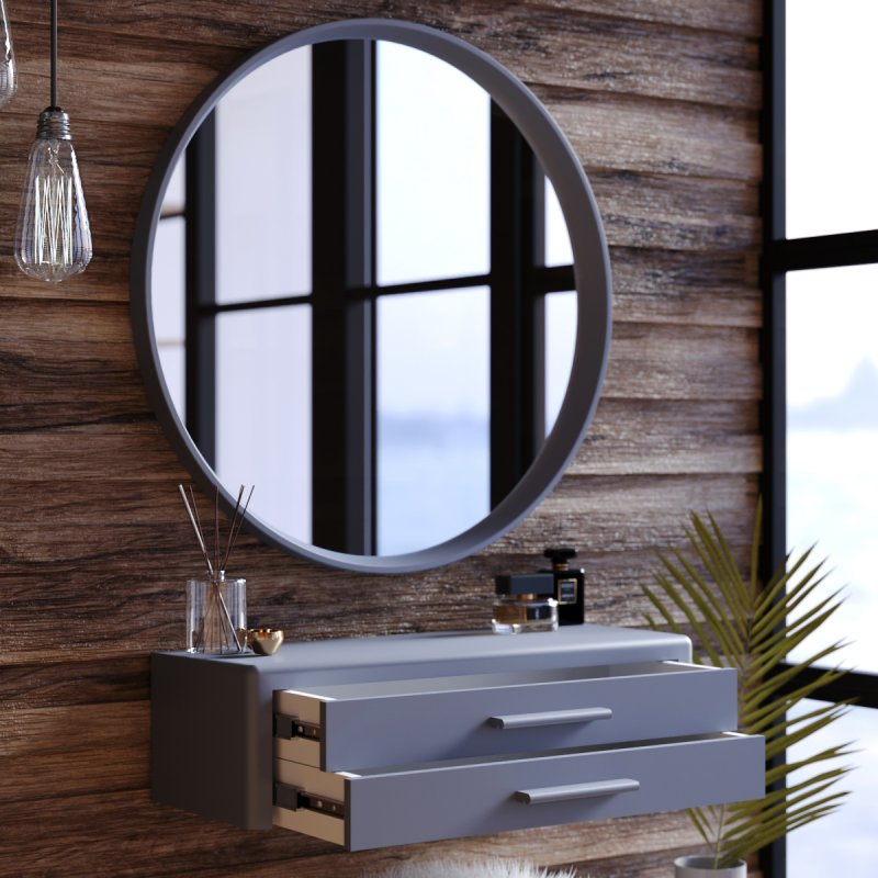 Навісний стіл "Олівер" виконаний з фарбованого МДФ, має два висувні ящики для зберігання косметики та інших дрібниць. Можете розмістити його на вільній стіні або в ніші. Компактні розміри моделі (В/Ш/Г): 182×630×250 мм підійдуть для інтер'єру навіть смарт-квартири.