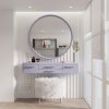 Містка конструкція з чотирма висувними ящиками дозволяє акуратно розкласти всі косметичні засоби, прикраси та інші дрібниці. Завдяки відсутності біля столу ніжок, виріб візуально сприймається як легше, а приміщення стає просторішим. Такий столик для макіяжу можна закріпити на бажаній висоті, зробивши цим місце для догляду за собою більш комфортним.