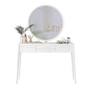 Шукаєте стильне та функціональне рішення для облаштування вашої спальні? Трюмо – туалетний столик ідеально підійде для цього завдання! Цей туалетний столик стане не лише вашим помічником для нанесення макіяжу чи догляду за собою, але й чудовим елементом декору.