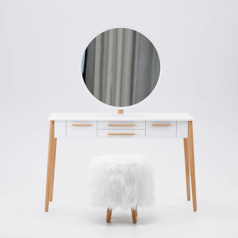 Вбудоване дзеркало: Велике дзеркало, вбудоване в конструкцію столика, дозволить вам комфортно наносити макіяж або робити зачіску. Дзеркало розташоване на зручній висоті, що дозволяє легко використовувати його щодня.