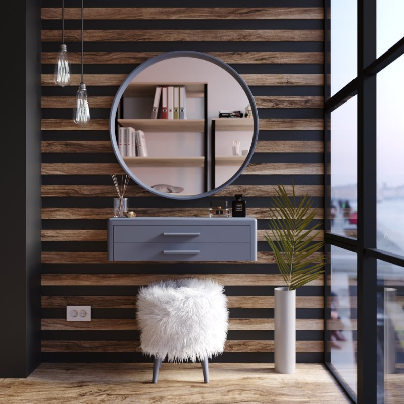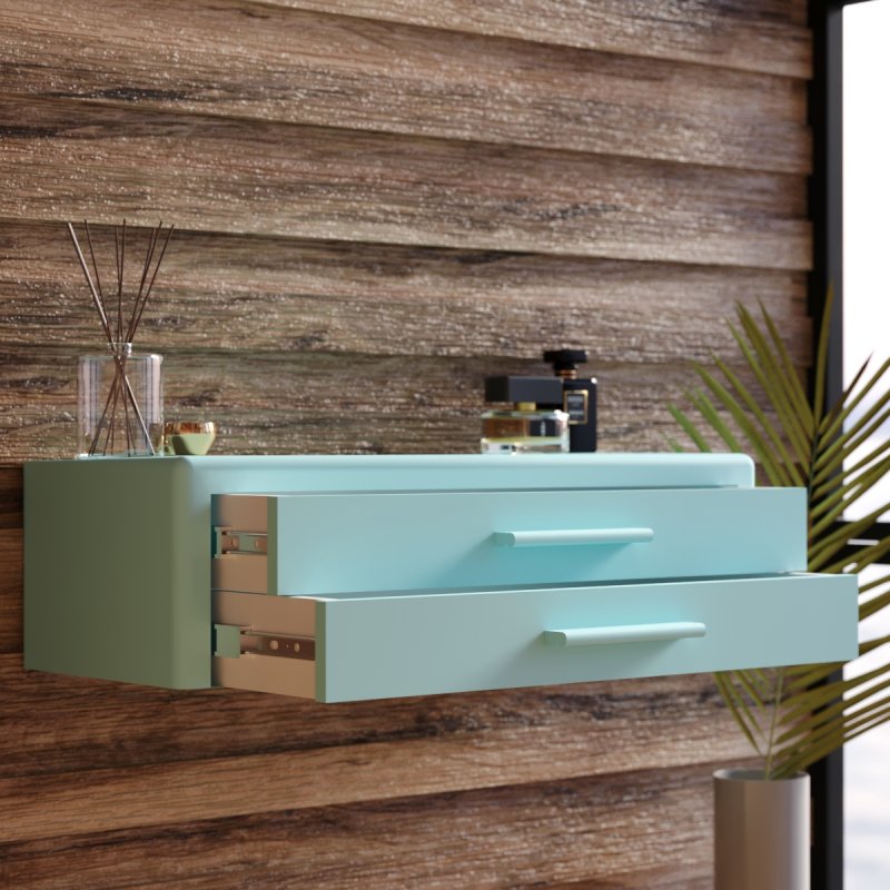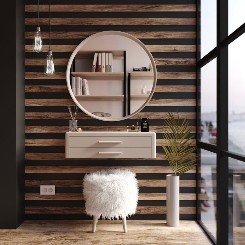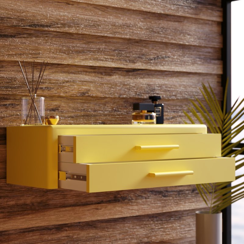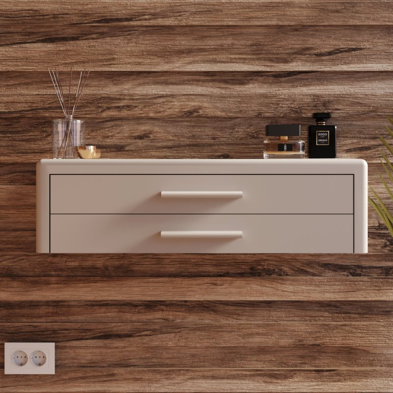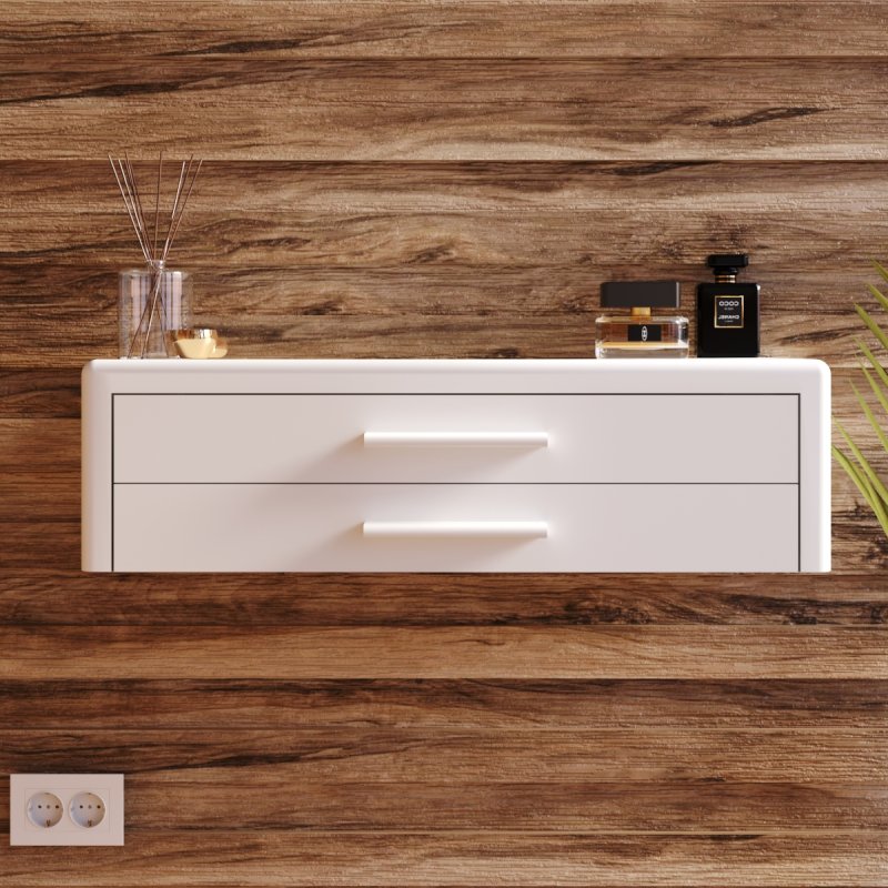 Підвісна конструкція дуже зручна при збиранні, вам не доведеться рухати чи піднімати виріб. Навісний стіл представлений на палітрі соковитих та класичних кольорів. Гладке покриття надає ледь помітного блиску, що дозволяє з легкістю видалити забруднення від косметики.