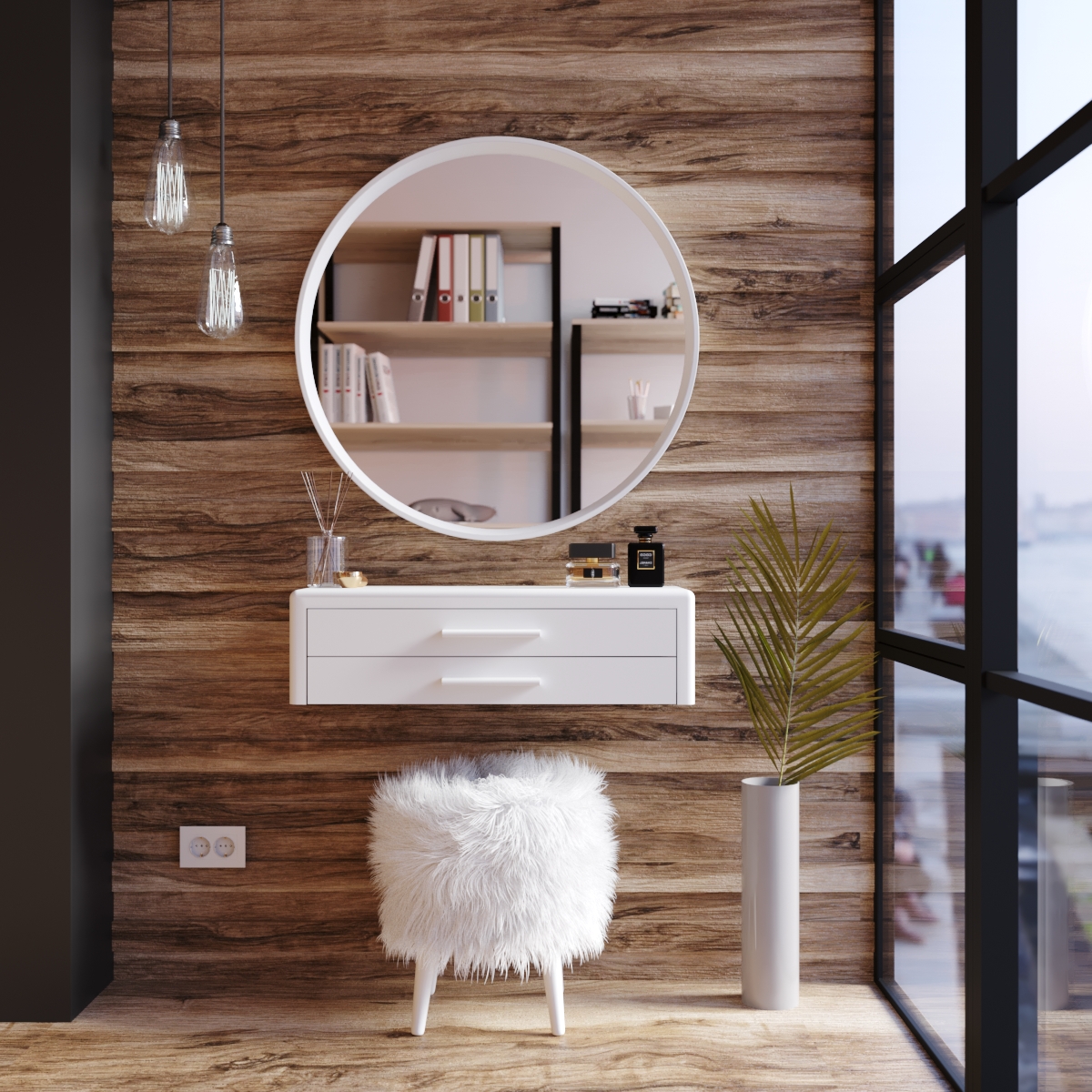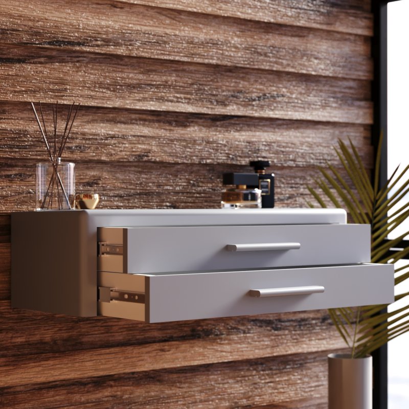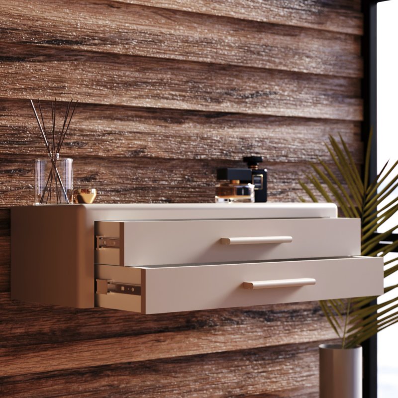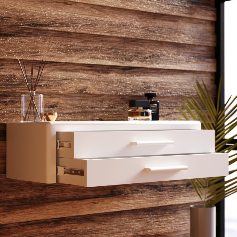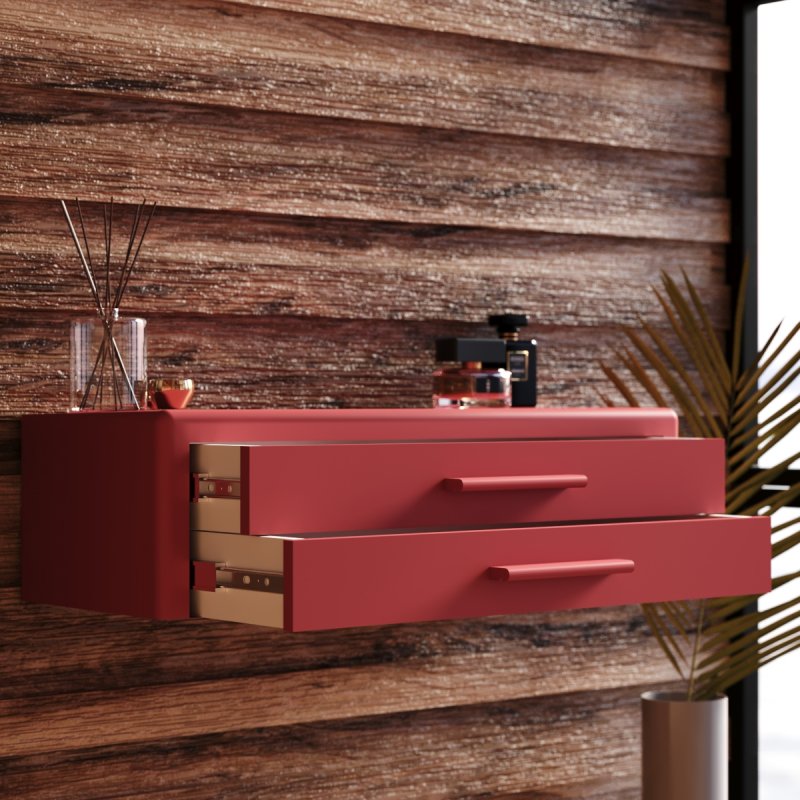 Підвісна конструкція дуже зручна при збиранні, вам не доведеться рухати чи піднімати виріб. Навісний стіл представлений на палітрі соковитих та класичних кольорів. Гладке покриття надає ледь помітного блиску, що дозволяє з легкістю видалити забруднення від косметики.