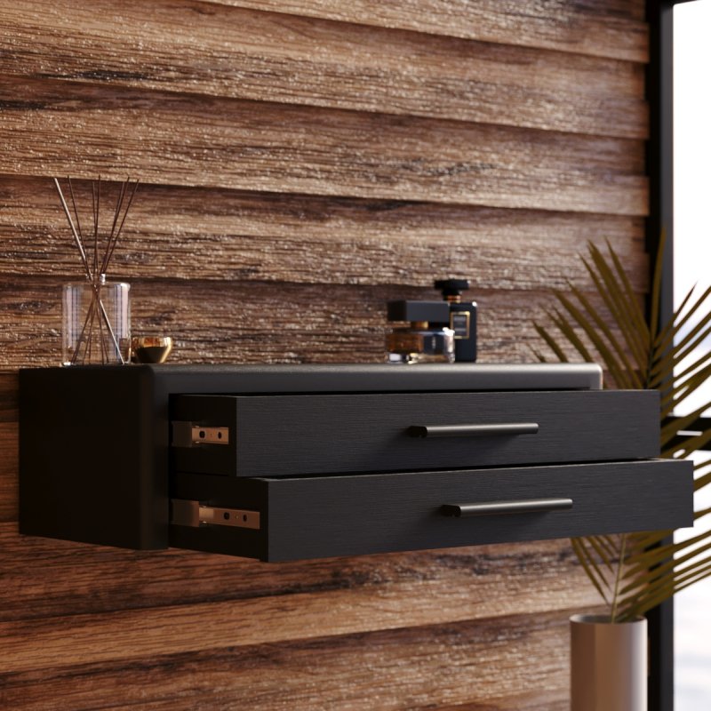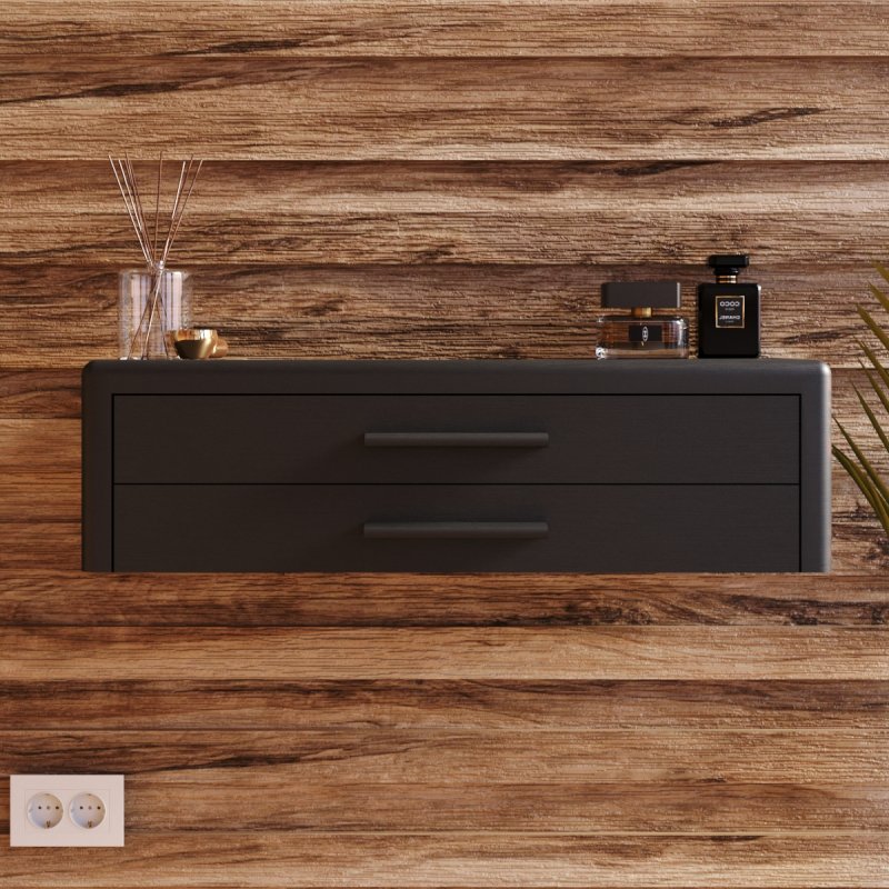 Туалетний столик "Олівер" в інноваційному дизайні далекий від класичного виконання. Настінне кріплення стало модним трендом не лише завдяки гарному вигляду. Таке розміщення полиці надає бонус у вигляді економії місця, якщо приміщення не має великих розмірів. Незамінний предмет меблів із двома висувними ящиками у вашій спальні чи передпокої. Ящики досить місткі та глибокі, в них з легкістю розмістяться ваші документи, прикраси, засоби догляду та парфумерія.