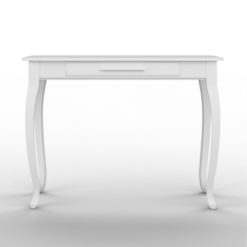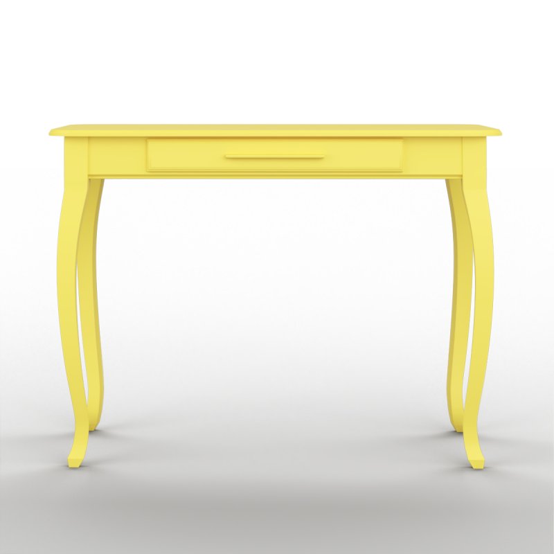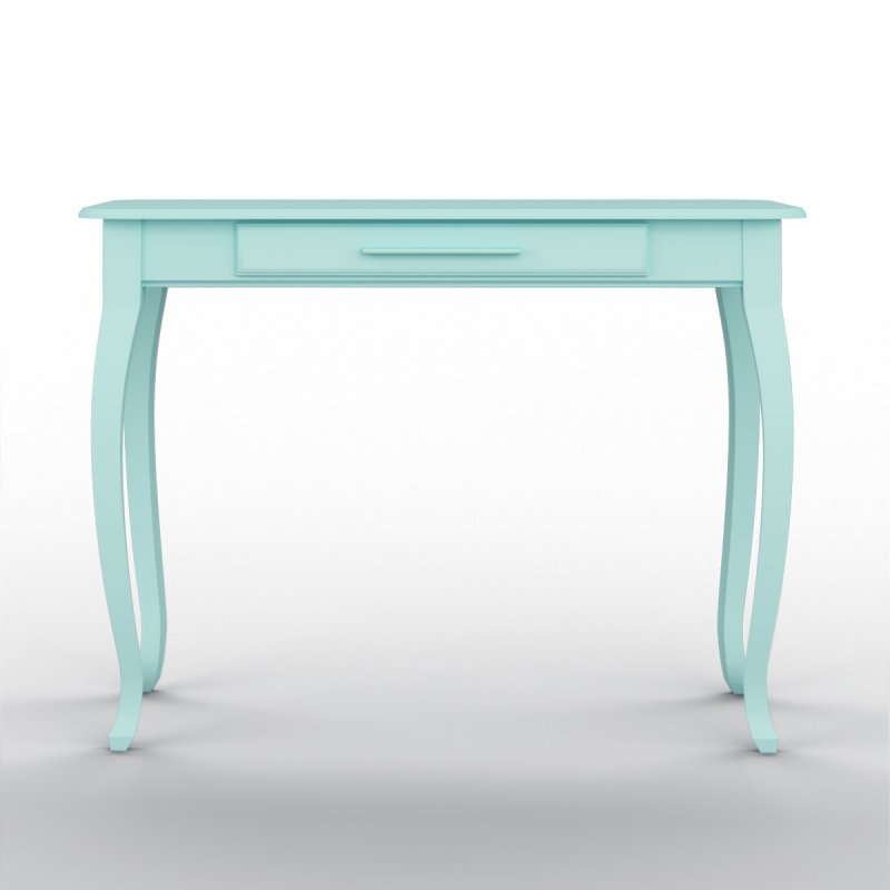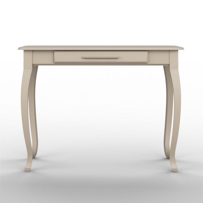 Виріб має витончені фігурні ніжки, виточені з натурального масиву берези, та простору стільницю із МДФ. Це універсальна модель, яка має досить велику робочу поверхню для розміщення косметики, скриньок з прикрасами або просто настільного дзеркала.