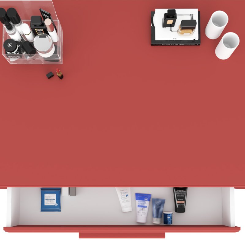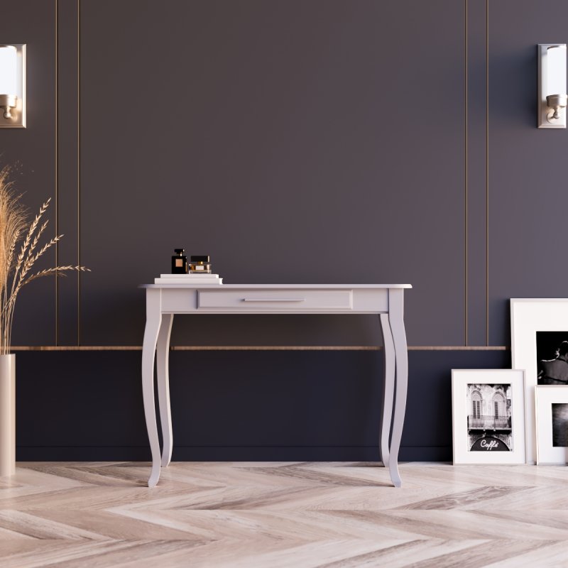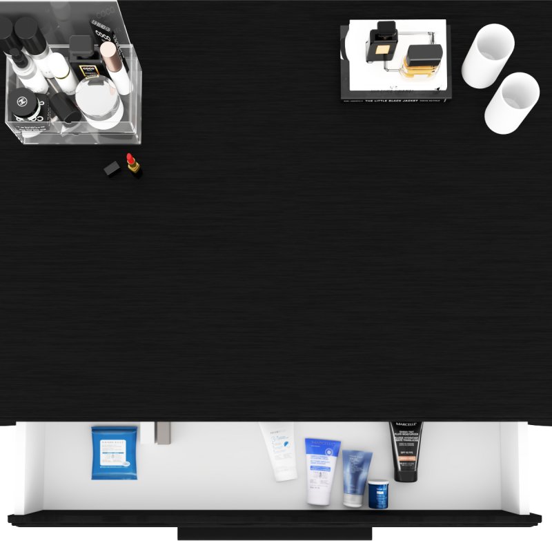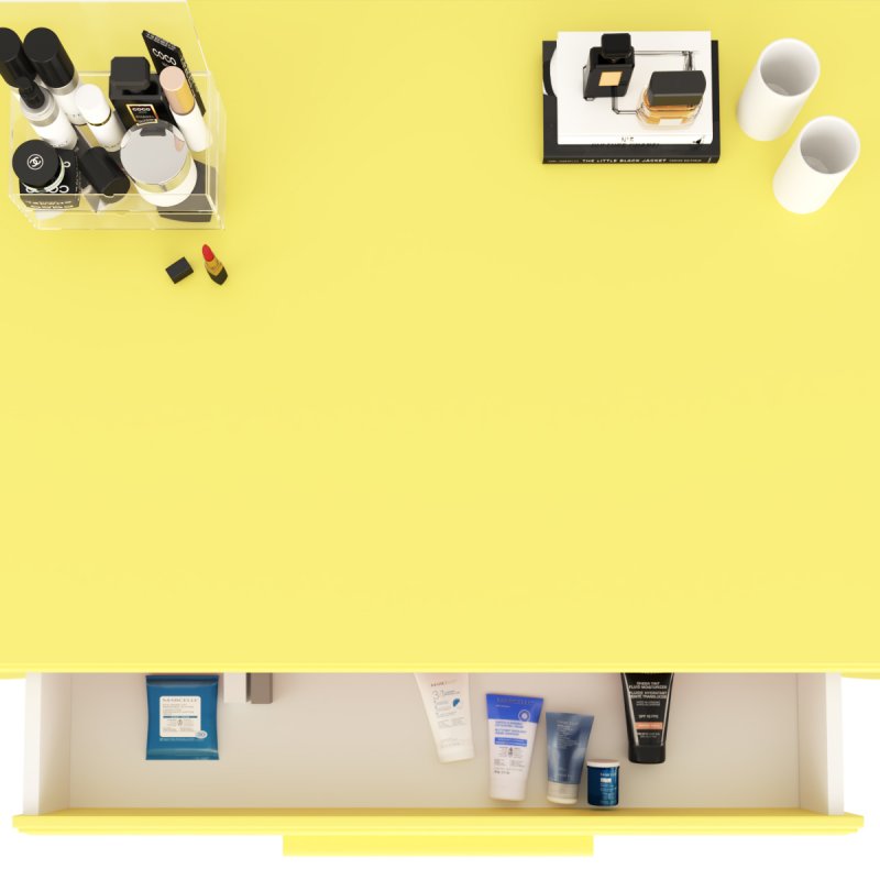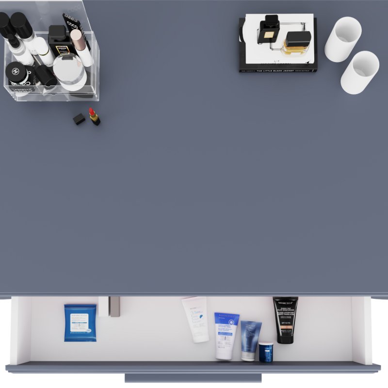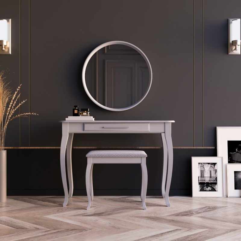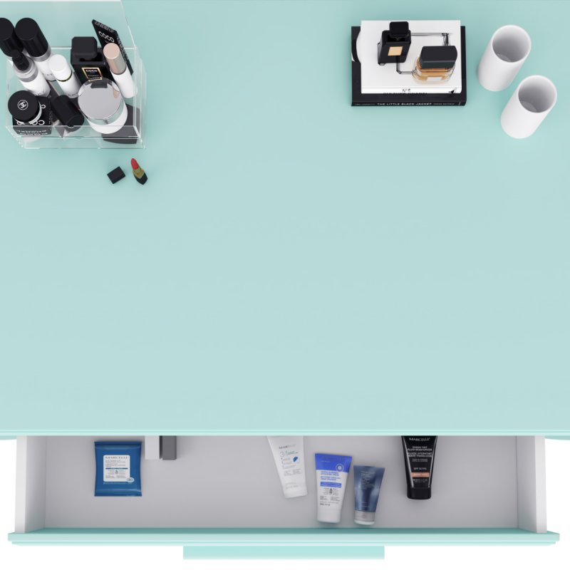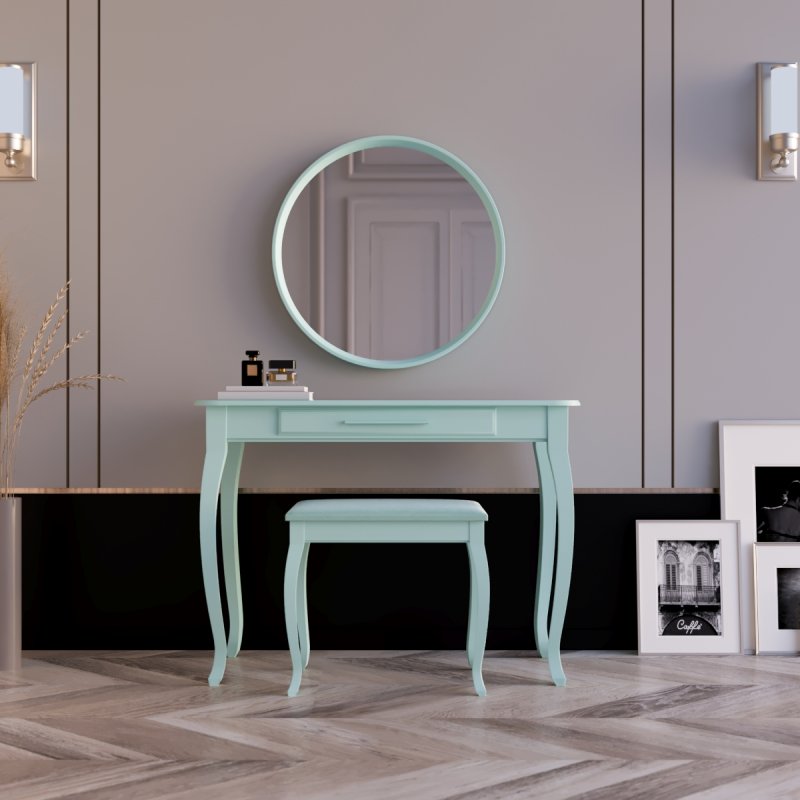 Косметичний столик оснащений місткою висувною скринькою, де можна зберігати косметичні засоби, аксесуари та інші дрібні речі, здатні створити безлад на стільниці. Скриньку закріплено на безшумних телескопічних напрямних, з використанням якісної фурнітури.