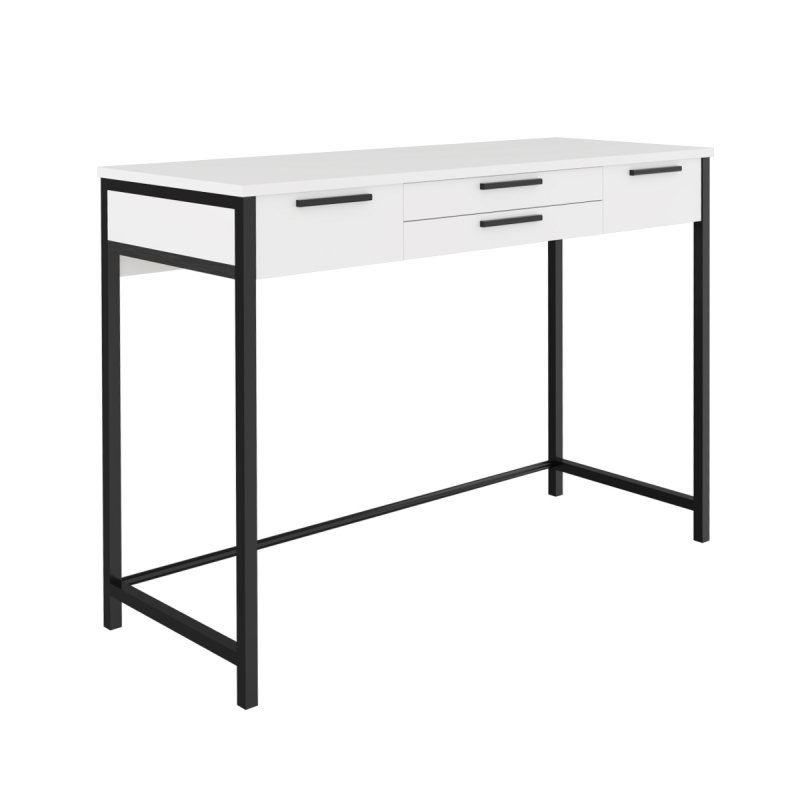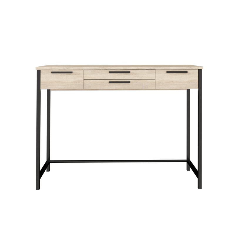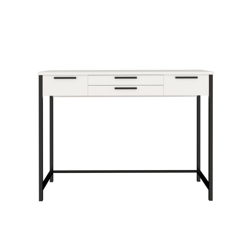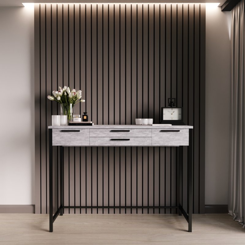Наш візажний столик – мрія будь-якої сучасної жінки, він наділений найкращими якостями та оптимальними характеристиками. Верхня частина виконана з ламінованої ДСП, товщина стільниці – 16 мм. Конструкція передбачає наявність чотирьох висувних ящиків для зберігання улюблених кремів та косметики. Ящики фіксуються за допомогою якісних безшумних напрямних.
